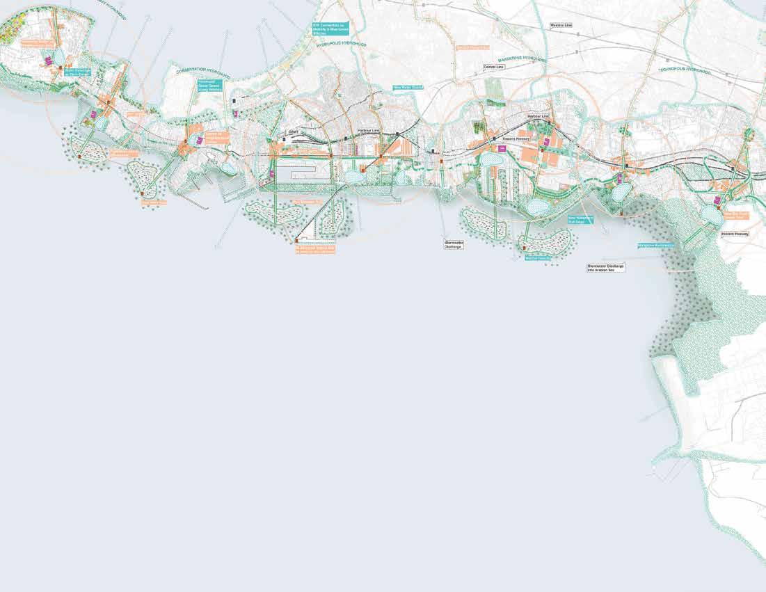 Hydrohoods of To-morrow revolves around the hydrohood—a new net-zero neighborhood unit that will equitably and sustainably shape the future of Mumbai’s Eastern Waterfront. The hydrohood concept reverses the trend of Mumbai’s unsustainable, inequitable, and ever-expanding water supply system, and in doing so, leapfrogs the development of a traditional, top-down distribution network to create a waterfront framework organized around smart and equitable water management.