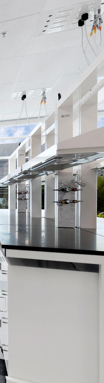 LAB PLUMBING SYSTEMS CDA, VAC piping to each bench island ceiling service panel (CSP) piped to a central utility room