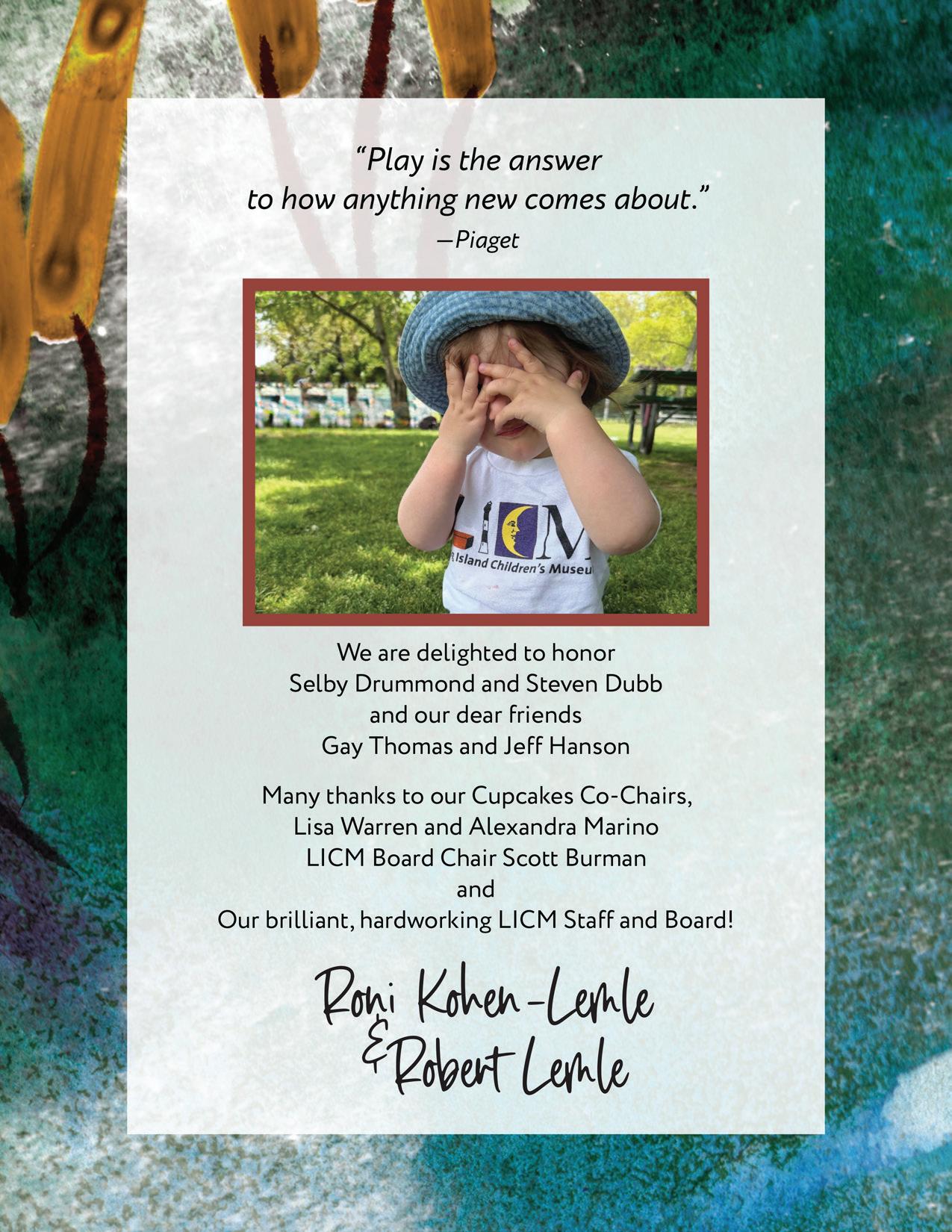 Cupcakes & Cocktails is the Long Island Children’s Museum’s premiere annual fundraising event , designed to unite the community in support of our vital educational resources, access initiatives, cultural experiences, interactive exhibits and dynamic theater presentations. This highprofile event attracts business leaders, educators, government officials, community partners, artists and performers from across the region, all coming together to network and collaborate on advancing the well-being of children through the power of play.