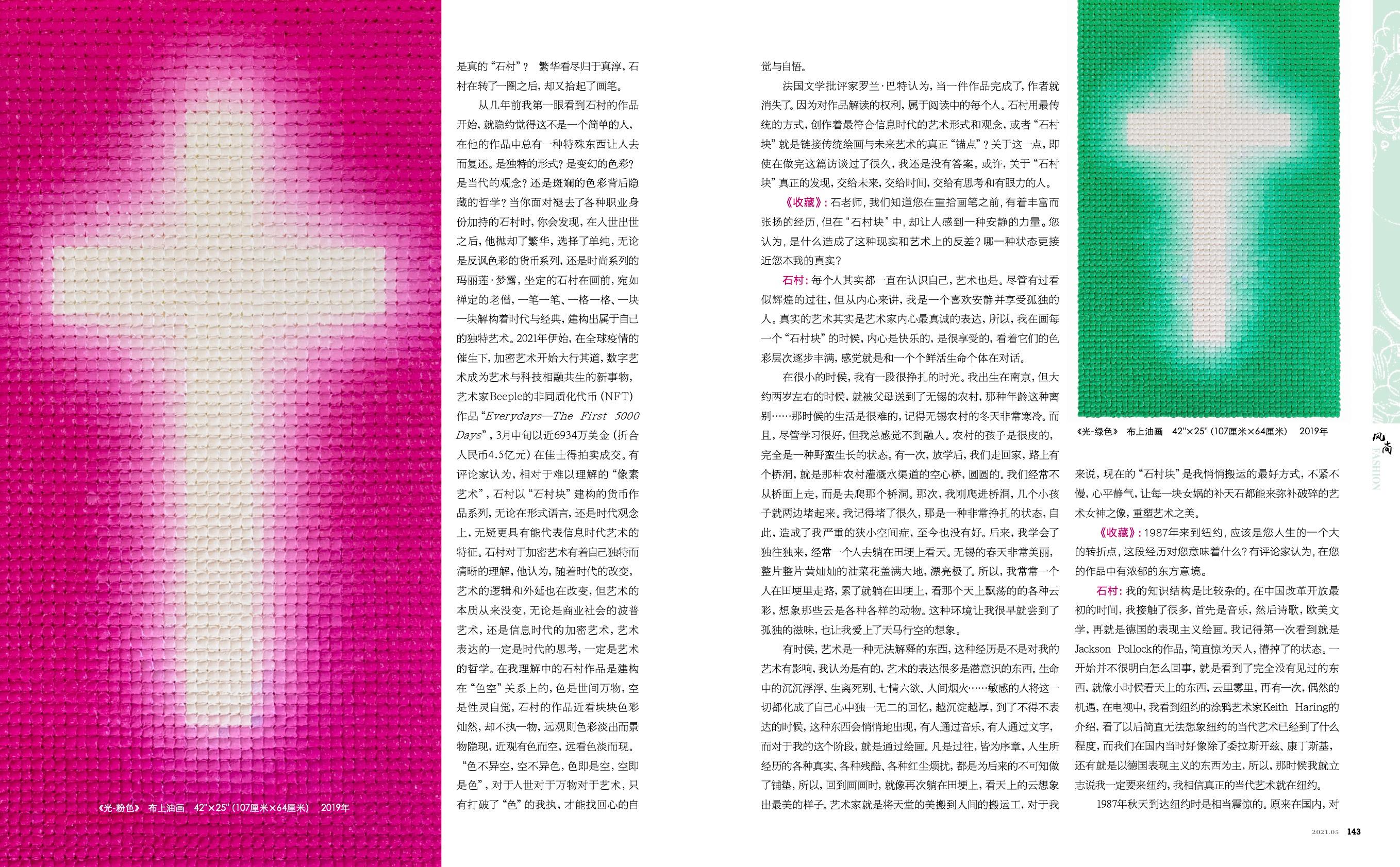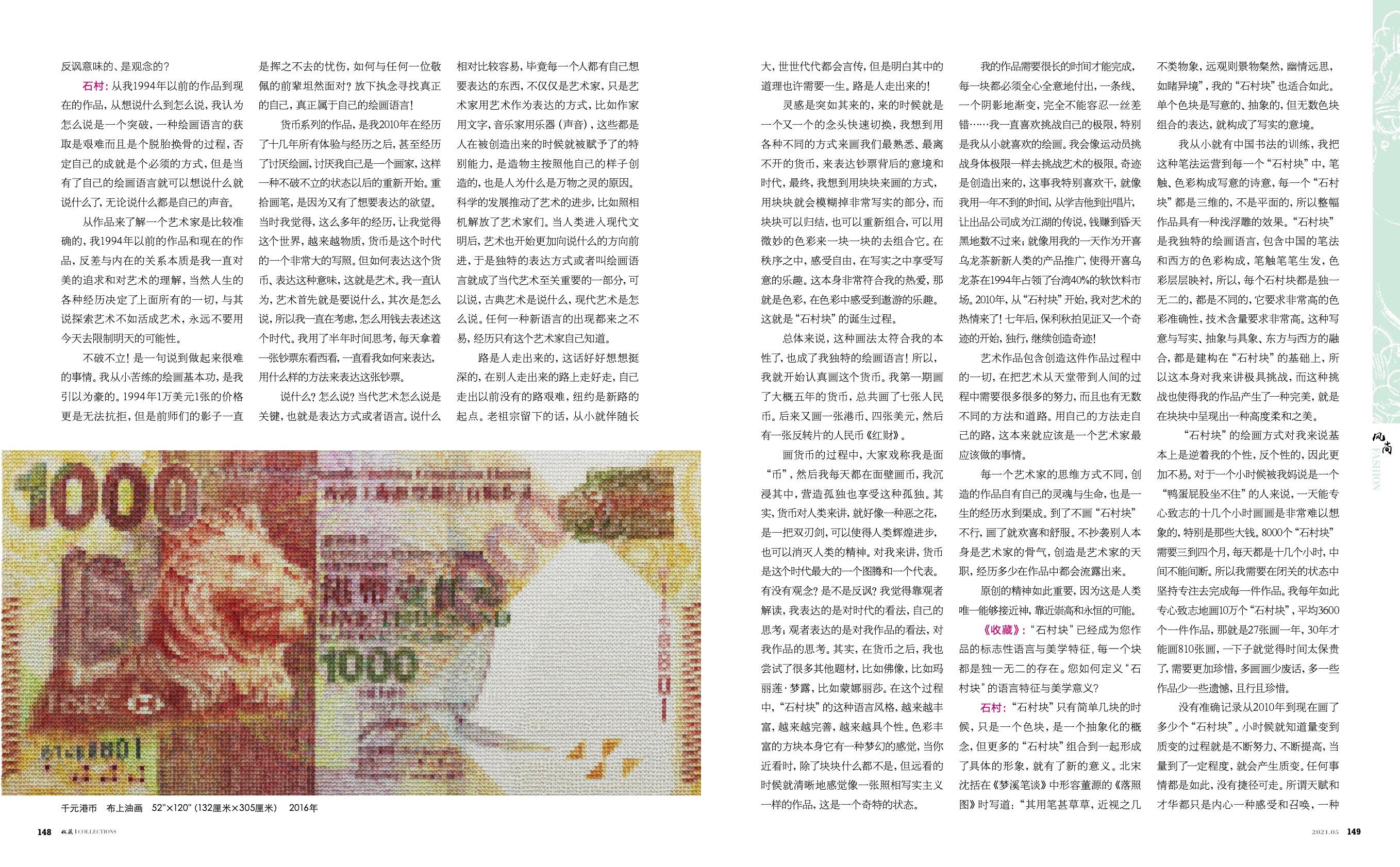 ⽯村,当代艺术画家、⾳乐⼈。 1963年出⽣南 京,1987年移居纽约。作为职业当代艺术画家,⽯ 村从1989年起即在纽约著名当代艺术画廊及美术馆 如 Alternative Museum(另类博物馆), the Clock Tower (钟楼画廊) 及White Column (⽩柱⼦画 廊)以及德国和苏格兰各画廊参展, 他的抽象作品 《 个古⽼的爱情故事》被德国国Grimm-Museum