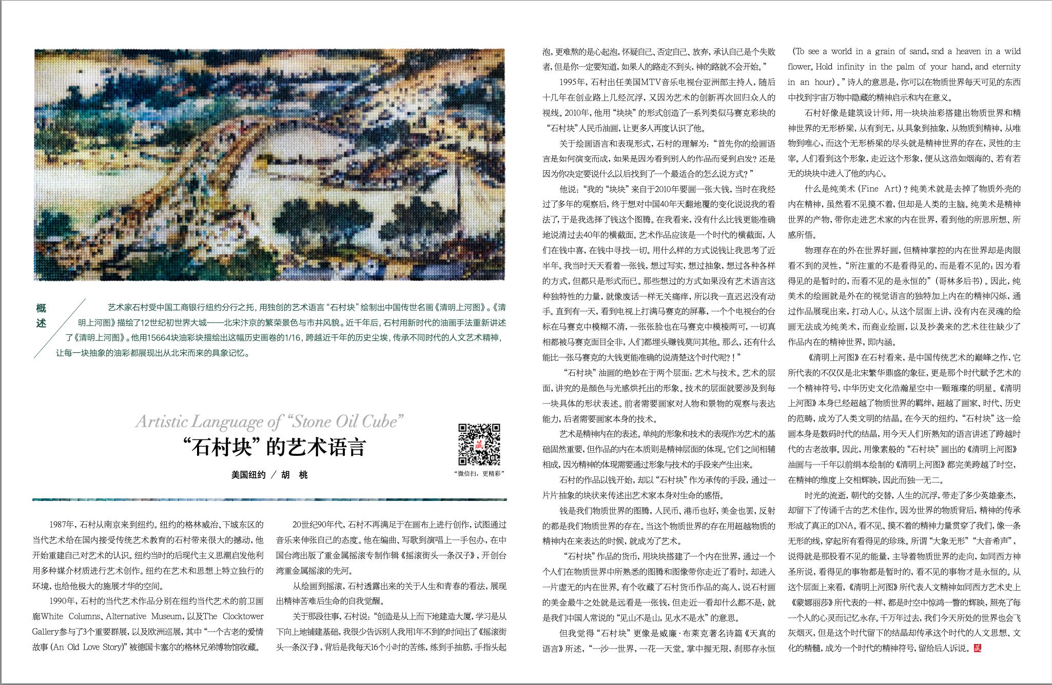 年, 美国中⽂电视台《哈啰纽约客》(Hello New Yorker) 节⽬专题采访⽯村,制作播出了电视 节⽬《⽯村:画不惊⼈死不休》。同年,美国《侨 报》采访⽯村并做了专题报道《在⻢赛克的世界⾥