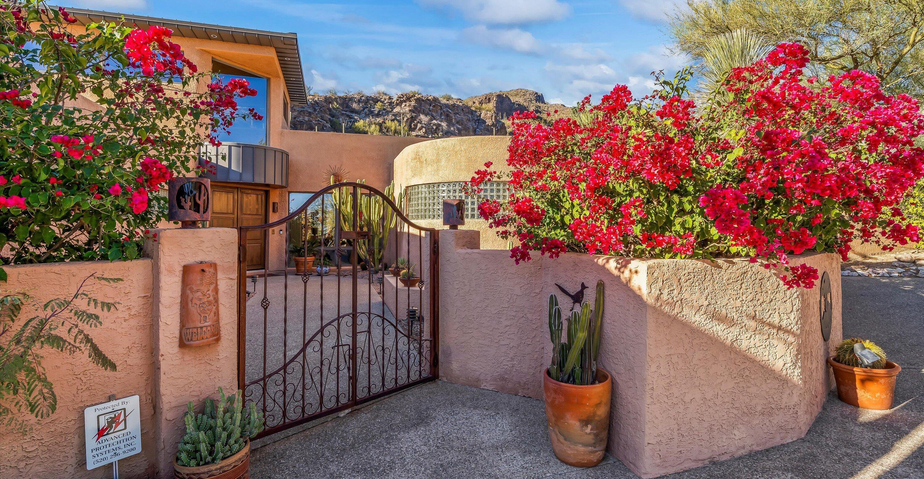 Stunning home in a gated enclave offering spectacular desert beauty. This home sits on a 3.31 acre parcel allowing you to enjoy incredible wildlife, 142 saguaros & trail access into Saguaro National Park West. Step inside to find stained concrete, hardwood floors & tile throughout the main living areas along w/upgraded carpet in bedrooms. Two gas fireplaces, a modern kitchen with gas range & hood, Bosch refrigerator &