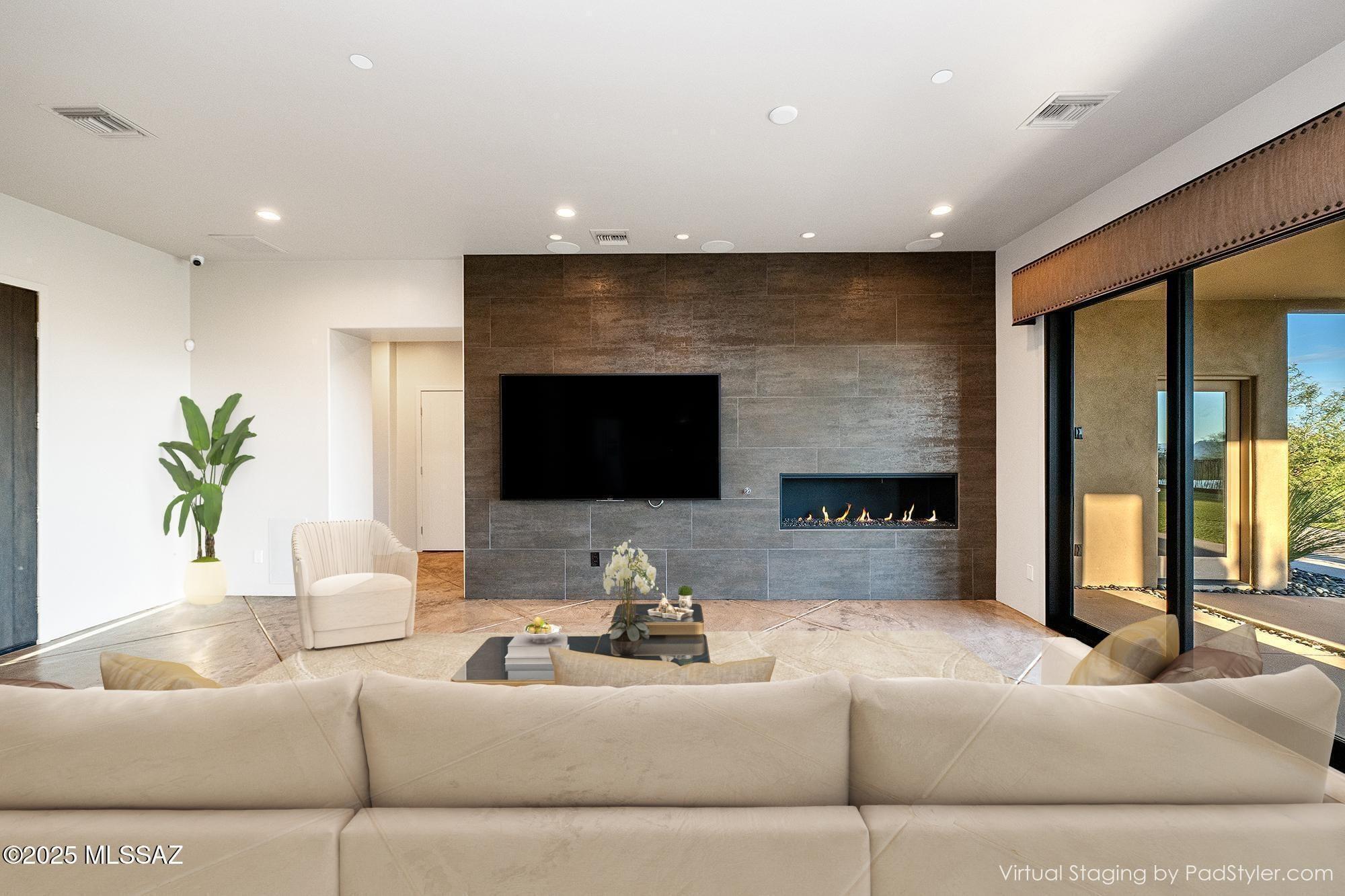 This stunning, brand new 2024 luxury contemporary is nestled on a 1.19-acre view lot in Alta Vista Sonrisa in the Catalina Foothills and offers sweeping mountain views. Highlights include concrete paver driveway, a covered entry with custom wrought iron entry door, a grand foyer entry, and a spacious great room with a soaring ceiling, porcelain & wood flooring, 2 FPs and a wall of sliding glass doors.