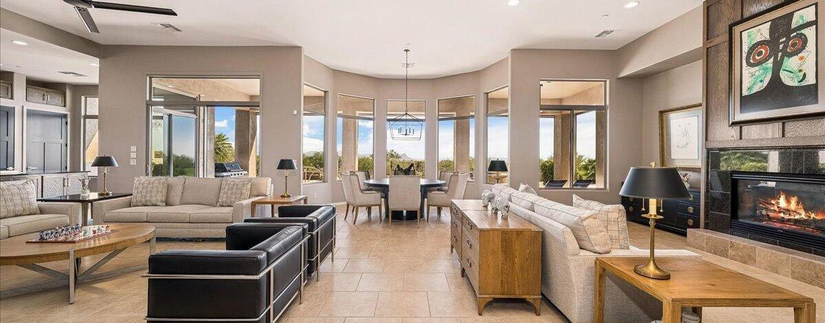 Luxurious, resort-style desert living, indoors and out. Nestled in the exclusive, gated Coyote Creek neighborhood, this breathtaking luxury residence offers elegance, comfort and truly impressive outdoor living spaces. Enjoy phenomenal panoramic mountain views from every angle, a brand new oasis-like pool with spa-like water features, and a very spacious travertine pool deck, all completed in 2025. The outdoor space is an entertainer's dream, featuring citrus & fig trees, a cozy fire pit, a welcoming, large front courtyard with fountain, and professional landscaping, irrigation and lighting throughout. Inside, find a brand new custom kitchen, soaring ceilings, light, bright spaces and gorgeous views from large windows. A must-see!