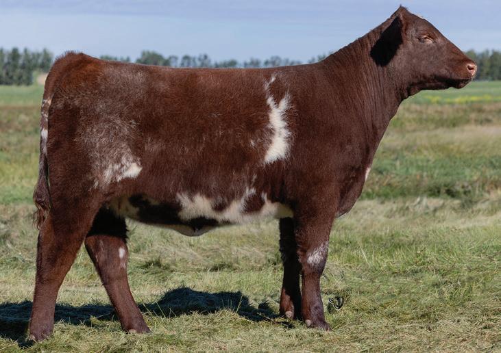 Lucky number 7! Help yourself here to a a standout foundation female to cap off our inaugural Bred for Banners fall sale that comes right from the heart of the program. This is a sensibly sized heifer who has an undeniable presence to her, and proportions progressively with a long hip and a stout, flexible hind leg. At Farmfair, her dam was the calf along side the Champion Shorthorn Female in 2022, Champion Junior Yearling Heifer and crowd favorite in 2023, and will be shown with lot 7 at side in 2024!