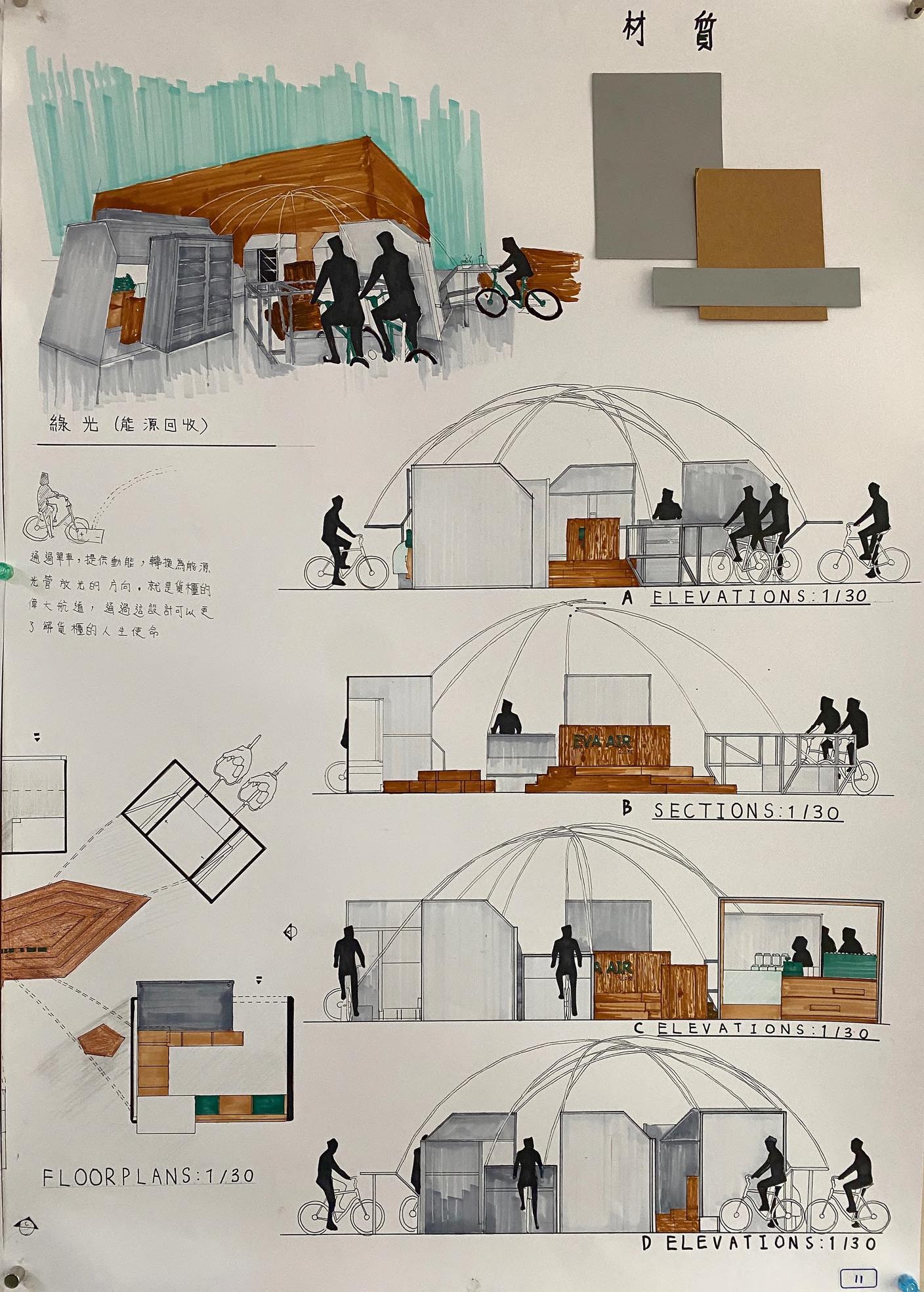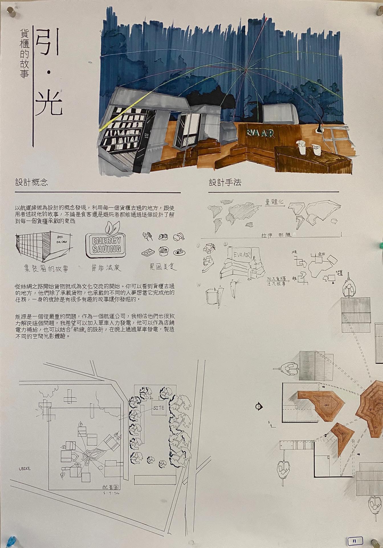The first design is to create a spatial design based on the cargo container provided by EVA Air. The chosen location is within Chung Yuan Christian University, specifically the grassland outside Quanyuan Valley.