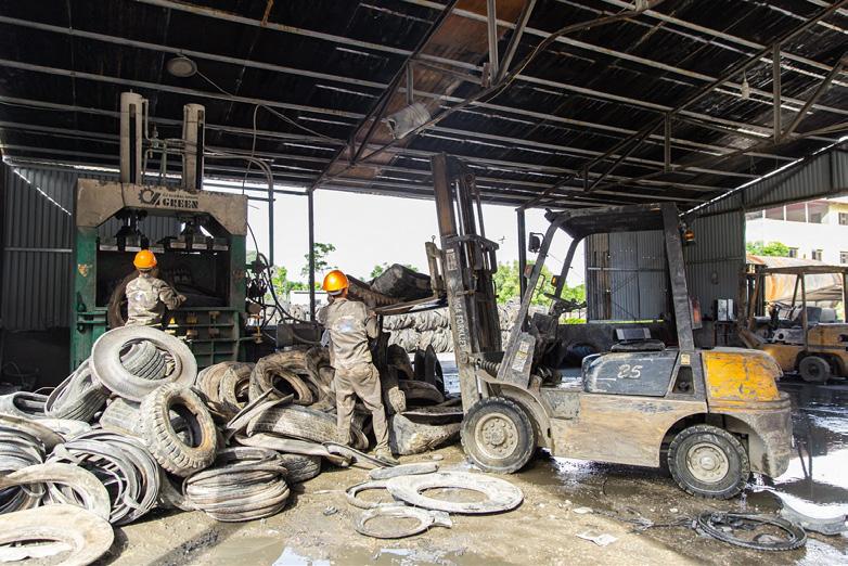 Hệ thống cracking yếm khí sử dụng nguyên liệu là cao su nhân tạo như ron phốt, băng tải, lốp cao su... đã được làm sạch và được đóng thành các cuộn, kiện (khối lượng khoảng 900-1100kg/kiện)
