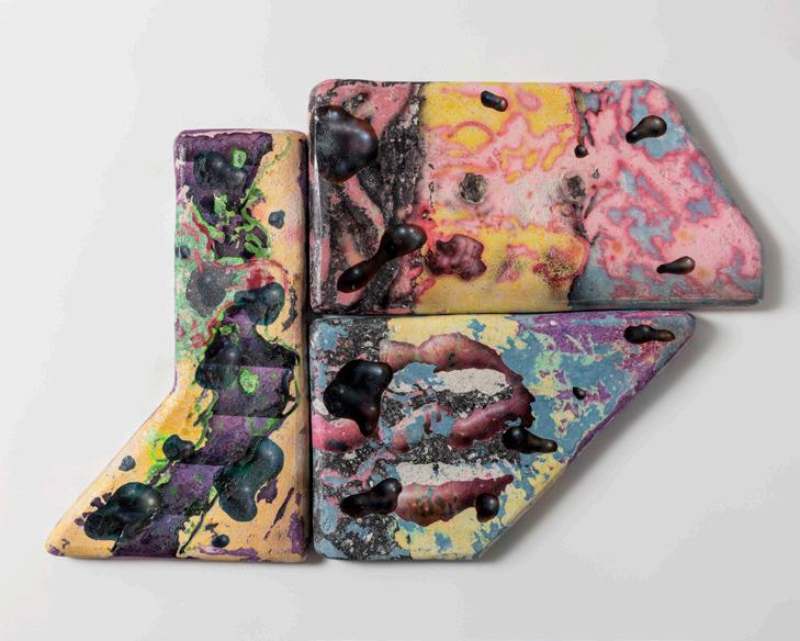 Expanding on individual memory, Jeong Hur’s composite works—It goes one ear and out the other, Purple rain, What does the donut mean, and In the bush—use diverse mediums to create varied photo sculptures. These composites of paper-pulp blocks were crafted as separate artworks during different moments of process. These pre-existing pieces are now united to form new works with novel ideas and fresh perspectives. Hur’s works stand as testaments to the ongoing conversation between old and new, where each experience adds richness to our evolving story.