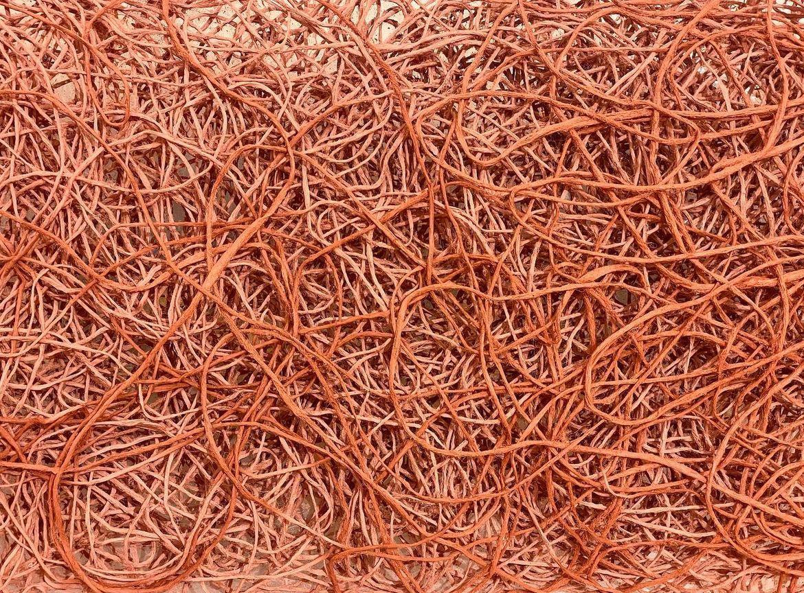 The final work of the exhibition, Melika Abikenari’s Klotho, explores memory within matrilineal relationships, labor, and repetition through the metaphor of a continuous thread. This ongoing performance piece involves the spinning of a thread made of felt and clay that accumulates in size and volume, expanding its impact on space and collective memory. The title references the youngest goddess of the Moirai in ancient Greek mythology, who spins the thread of human life. Through the integration of materials and performance, Abikenari creates a rich exploration of memory and lineage.