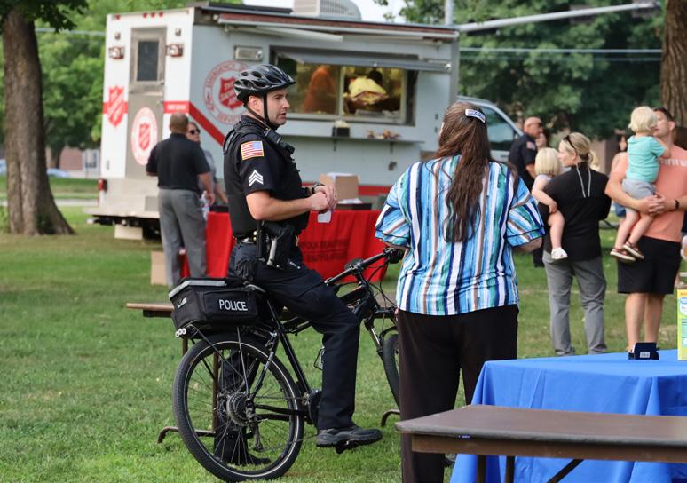 A Norfolk cop visits with a community member at National Night Out in 2021. Photo provided by LARM.