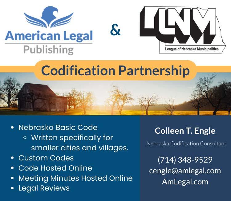 The NEBRASKA MUNICIPAL REVIEW (ISSN 0028–1906) is published monthly and the official publication of the League of Nebraska Municipalities, an association of the cities and villages of Nebraska, published at 1335 L St., Lincoln, Nebraska 68508. Subscription rates are $5 per single copy — $50 plus tax for 12 issues. Periodicals postage paid at Lincoln, Nebraska. Views of contributors, solicited or unsolicited, are their own and not to be construed as having the endorsement of the League unless specifically and explicitly stated by the publisher