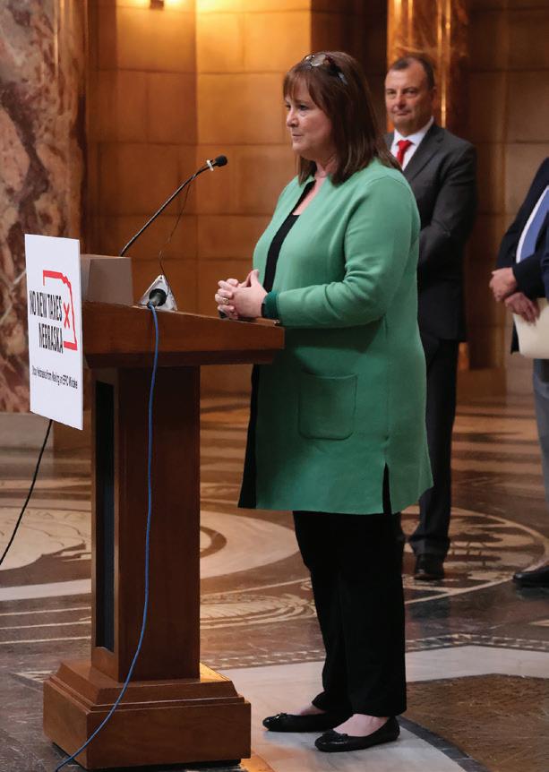 Representatives of many advocacy groups from across the state gathered at the Nebraska State Capitol Rotunda on March 14 to answer questions from the press and voice their opposition to the EPIC tax proposal.