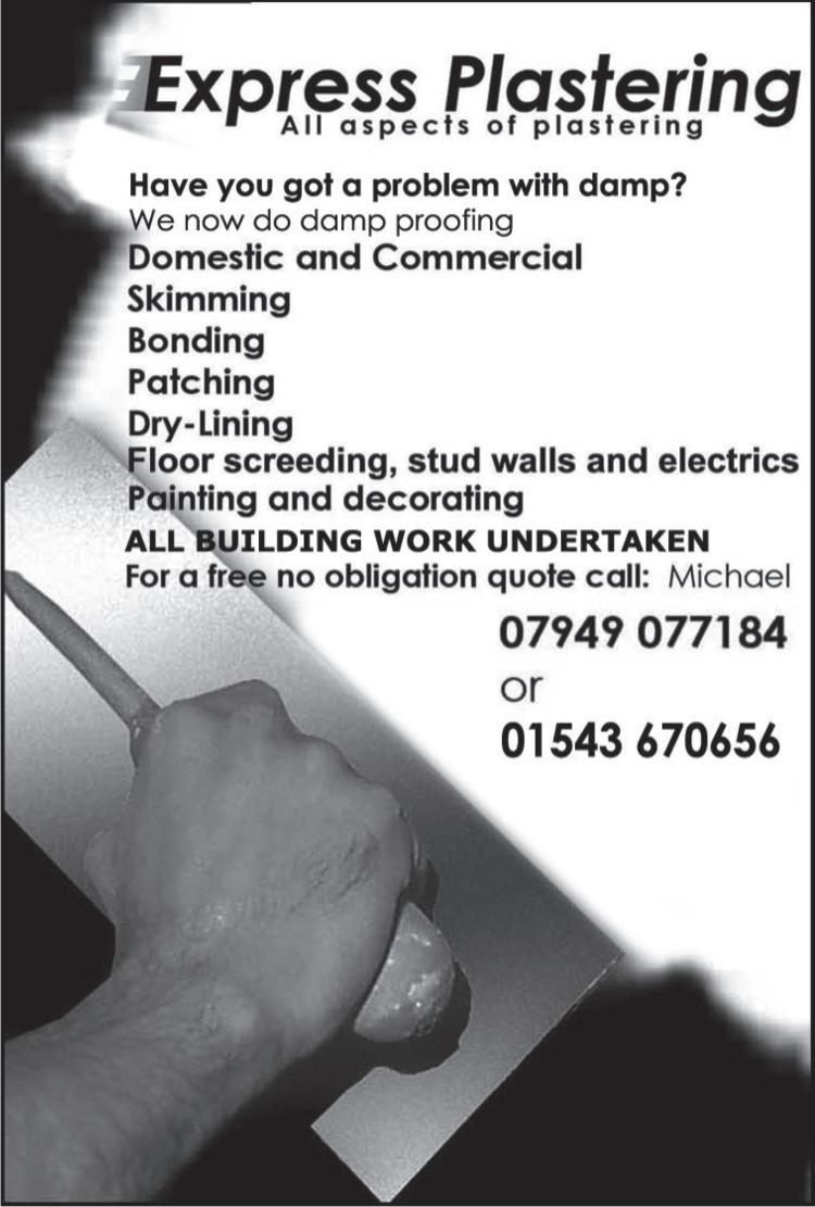 TO ADVERTISE YOUR BUSINESS CALL 01922 687430 OR VISIT WWW.LOOKLOCAL.COM 0121 695 7782 Rapid Installations Ltd • Qualified electrician • Full/part house rewires • Fuse board repairs/upgrades • Fault finding • Outdoor lighting • All electrical work undertaken • TV aerials/CCTV/Sky Q • TV Wallmounts • Network cabling • Wifi boosters • Free estimates • Approved contractor • Fully insured • NO JOB TOO SMALL Tel: 0800 6335899 Mob: 07960 173589