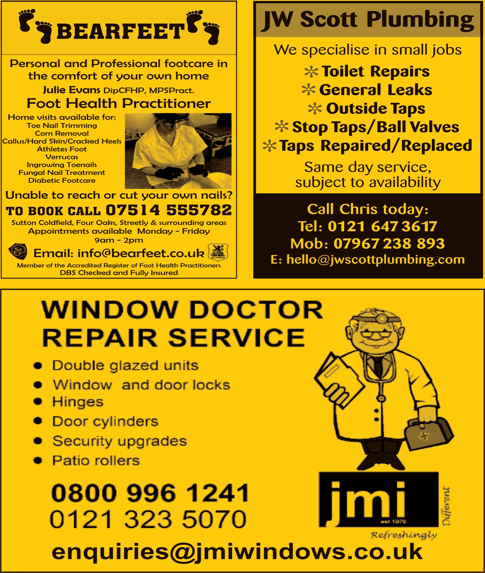 TO ADVERTISE YOUR BUSINESS CALL 01922 687430 OR VISIT WWW.LOOKLOCAL.COM If you would like to place an advert in our April edition, call us on 01922 687430, visit www.looklocal.com or email us at sutton-coldfield@looklocal.com. Deadline for the April edition is March 20th £35.00 per month £55.00 per month £85.00 per month £31.50 per month £49.50 per month £76.50 per month £28.00 per month £44.00 per month £68.00 per month