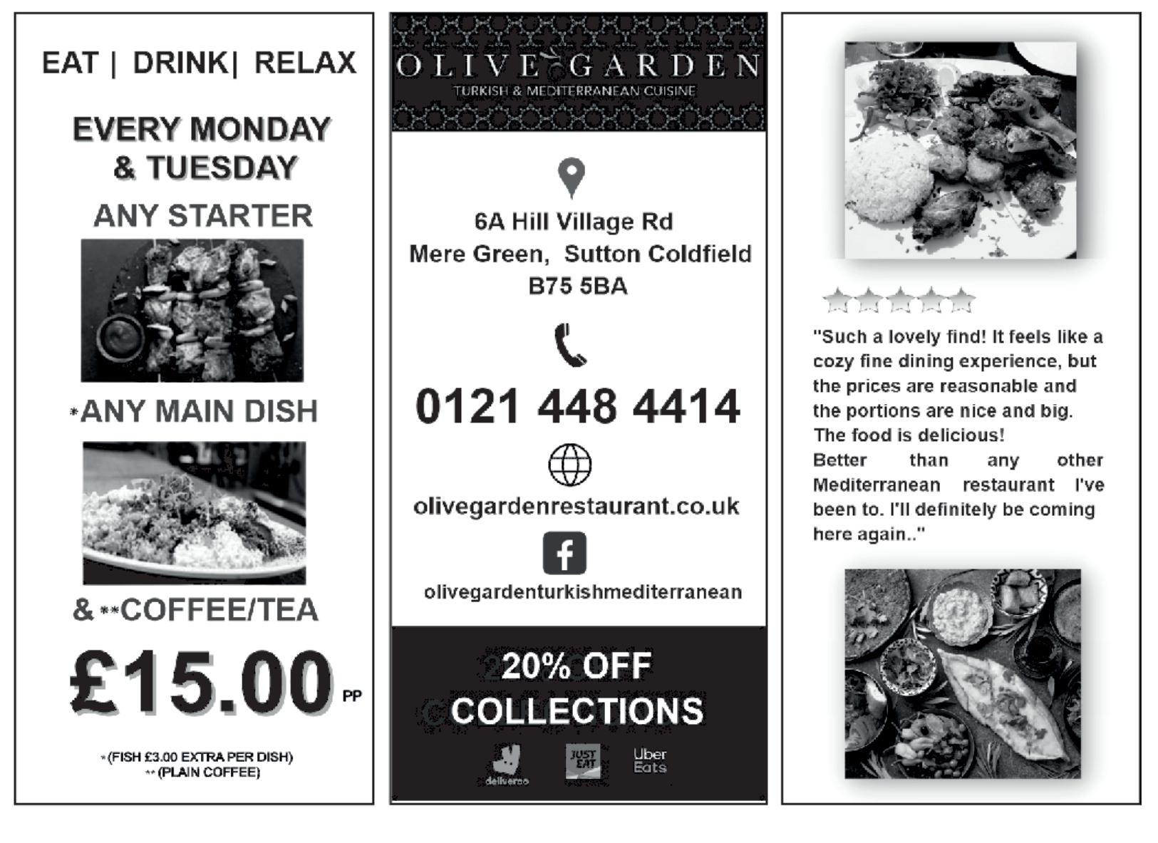 TO ADVERTISE YOUR BUSINESS CALL 01922 687430 OR VISIT WWW.LOOKLOCAL.COM MERE GREEN_____________________________________________DISTRIBUTION 4,000 FOUR OAKS ______________________________________________DISTRIBUTION 4,000 BOLDMERE GATE __________________________________________DISTRIBUTION 4,100 WYLDE GREEN & SUTTON TRINITY ______________________________DISTRIBUTION 4,000 WALMLEY ______________________________________________DISTRIBUTION 4,200 STREETLY _______________________________________________DISTRIBUTION 4,000 ALDRIDGE_______________________________________________DISTRIBUTION 4,000 If you would like to place an advert in our March edition, call us on 01922 687430, visit www.looklocal.com or email us sutton-coldfield@looklocal.com Deadline for the March edition is February 20th £35.00 per month £55.00 per month £85.00 per month £31.50 per month £49.50 per month £76.50 per month £28.00 per month £44.00 per month £68.00 per month All rights reserved. No part of this publication may be reproduced, stored in a retrieval system or transmitted, in any form or by any means, electronic, mechanical, photocopying, scanning, recording or otherwise without the written permission of Look Local Publications Limited. Look Local Sutton Coldfield, 29 Rowallan Road, Sutton Coldfield, West Midlands, B75 6RJ