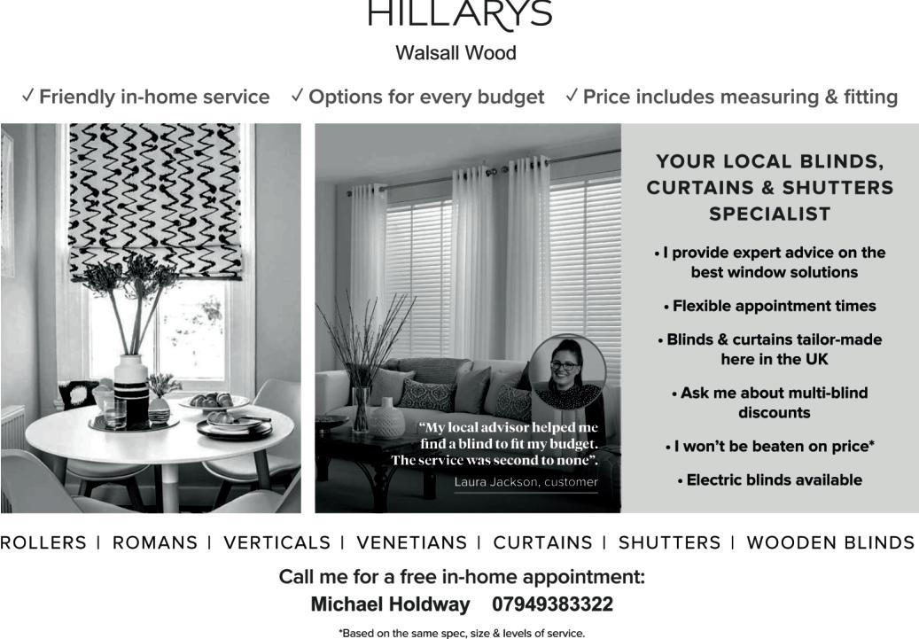 TO ADVERTISE YOUR BUSINESS CALL 01922 687430 OR VISIT WWW.LOOKLOCAL.COM Lee Clements ALL LOCKS - SUPPLIED - FITTED - OPENED UPVC LOCK SPECIALIST NEW HANDLES DOORS RE-ALIGNED SECURITY UPGRADES ANTI SNAP LOCKS MORTICE LOCKS YALE LOCKS EXTRA SECURITY KEYS CUT SAFES FITTED ALL WORK GUARANTEED - INSURED OAP DISCOUNT - 20 YEARS IN BUSINESS Emergency service available 0121 726 3350 www.thelocksmithbirmingham.com LOCKSMITH 0121 695 7782 steveturnercarpets@gmail.com Steve’s Carpets Ltd OVER 40 YEARS EXPERIENCE Samples brought to your home Expert planning & advice 07889 899035 For details call Steve on Carpets & Vinyls Supplied & Fitted Supply & Fitting Supplier of Artificial Grass