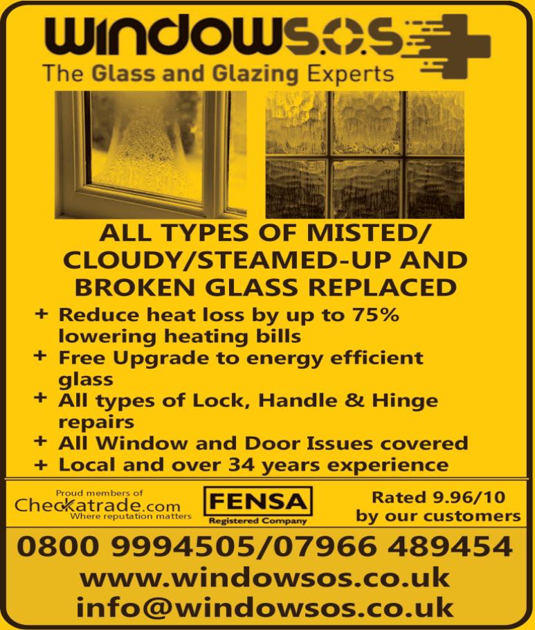 TO ADVERTISE YOUR BUSINESS CALL 01922 687430 OR VISIT WWW.LOOKLOCAL.COM GODWOOD GLASS & GLAZING • Est 1982 • Need to increase your home security? Snap Safe locks tted Secure handles tted for UPVC doors • Broken glass replaced • Broken or misted double glazed units • UPVC & aluminium window repairs • Handles & hinges replaced • Windows & door locks tted • All types of glass tted • No job too small T: 07787 804 153 and I will call you straight back FOR A FREE QUOTE CALL Excellent Dec 22