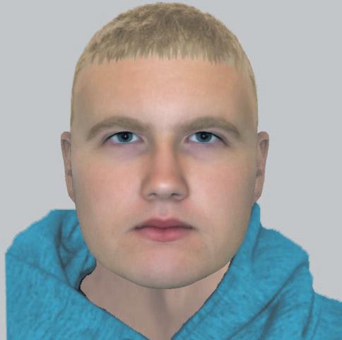 e suspect is described as a white man, about 5 9ins tall, of larger build with short dark blond hair. He is believed to have been wearing a turquoise blue Nike jumper with matching jogging bottoms.