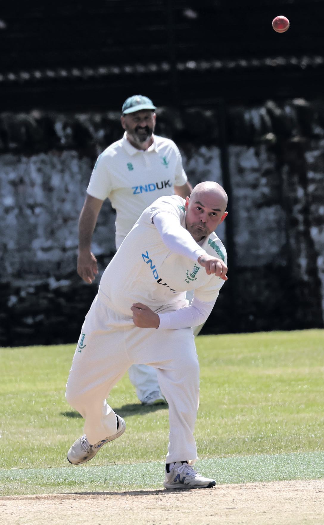 The reply with the bat never really got going, with wickets falling very regularly and batsmen struggling to get it away. Steve Perry batted well for 21, with only Jack Murfin (13) and Callum Haywood (13) reaching double figures.