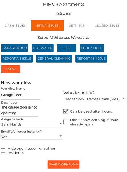 MiMOR’s Issues Manager Feature saves managers time by streamlining issue reporting and coordinating repairs automatically. Managers set up each issue’s workflow, enabling residents to submit issues easily through the user-friendly MiMOR dashboard.