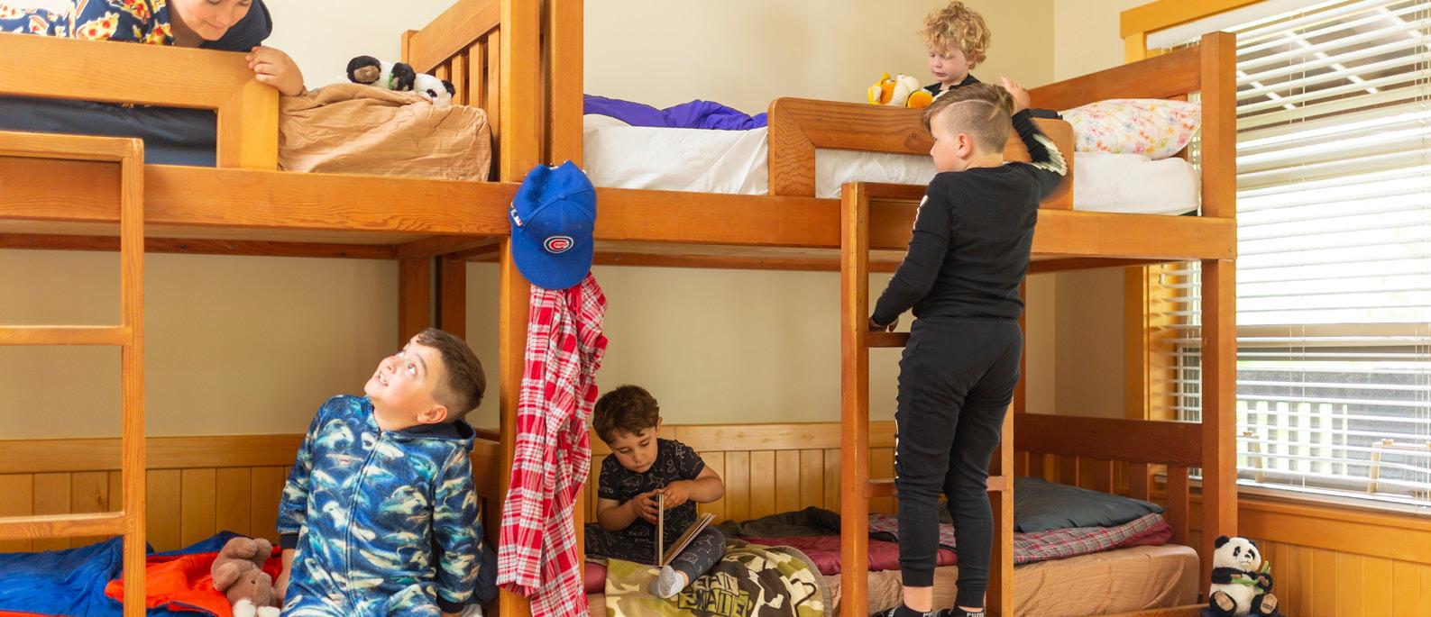 The Student Centre offers the ultimate multi-purpose facility and the best value for larger groups. Seven large bedrooms are outfitted with 4 sets of Douglas-fir bunk beds and one bedroom with 7 single beds. The Student Centre dock, just steps from the accommodations, creates a perfectly contained swimming area. The connected, 2,500 sq ft Trevor Linden gym is perfect for all types of physical activity and is an excellent Plan B in the event of inclement weather.