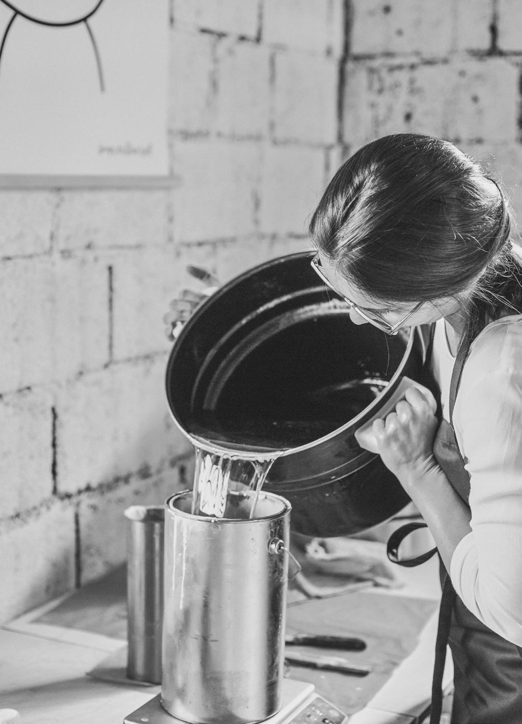 [04] Rückblick ins Jahr 2016: Julia bereitet die – bereits damals akribisch ertüftelte – Wachsmischung für das Kerzengießen vor.