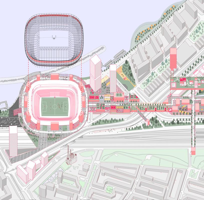 Si bien satisfacían las necesidades cambiantes del Feyenoord, estas transformaciones también comprometieron la intención del diseño original del estadio. El nuevo Estadio Feyenoord, propuesto por OMA, el Estadio Feijenoord y el club de fútbol Feyenoord, en una nueva ubicación a lo largo de Nieuwe Maas y un nodo de transporte altamente accesible, es una infraestructura preparada para el futuro para el fútbol y las actividades diarias en las comunidades circundantes.