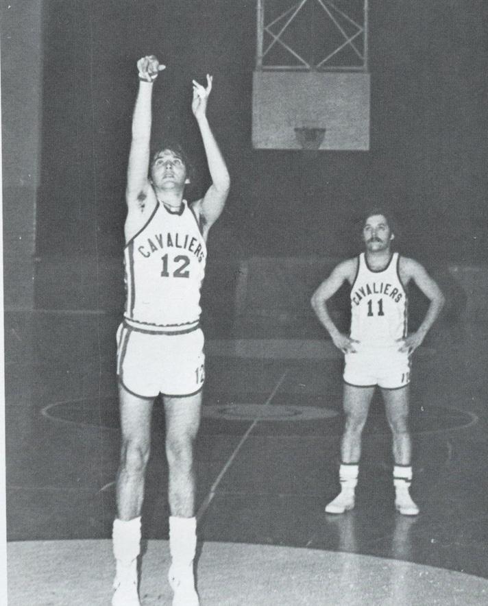 Nerney shooting his 1000th point for the Cavs. Photo via 1977 Cabrini yearbook.