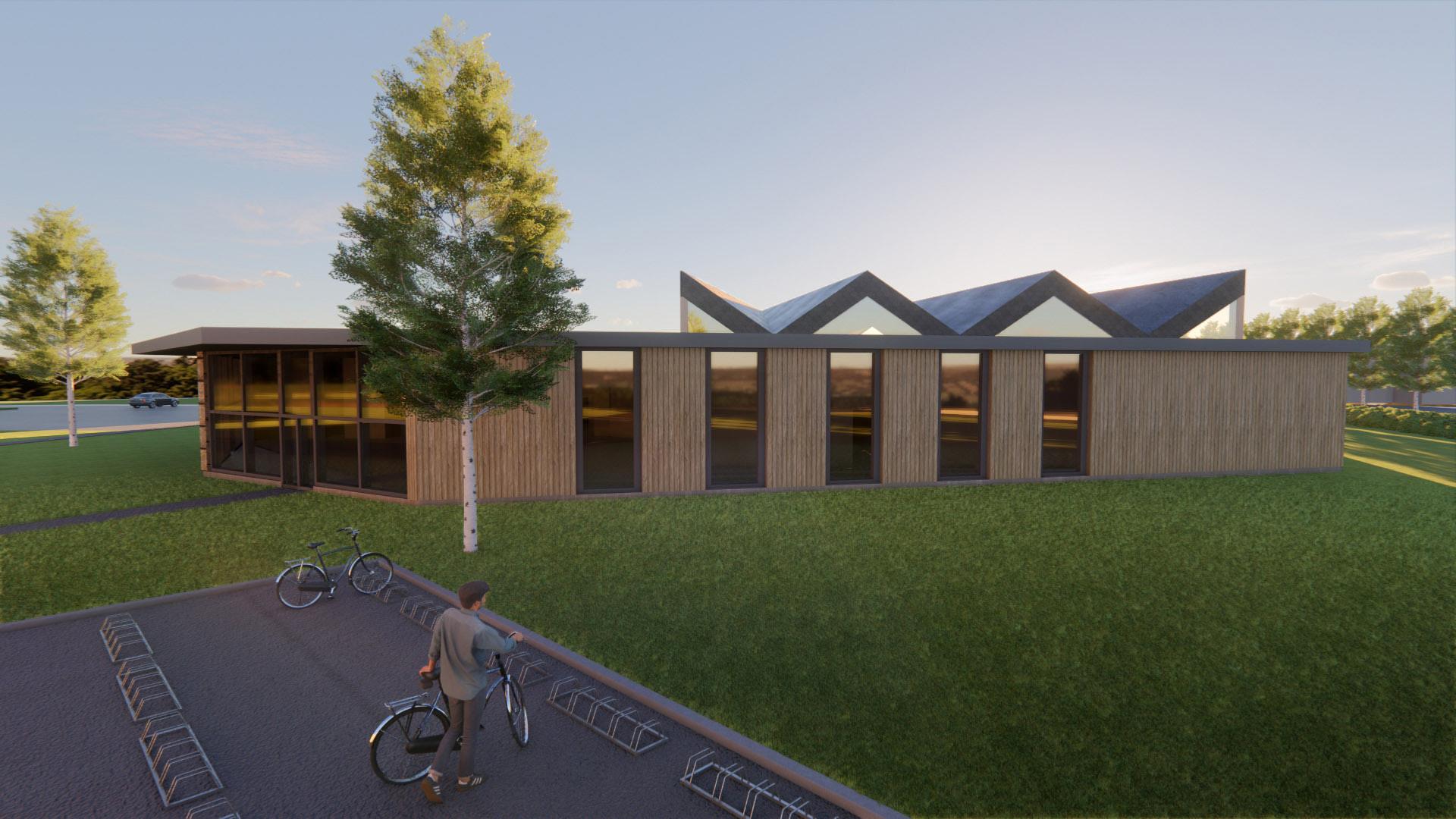Det mest utmanande med projektet var att utforma en takstruktur i trä med en så lång spännvidd. Det var även en utmaning att anpassa byggnaden till den oregelbundna formen på tomten.