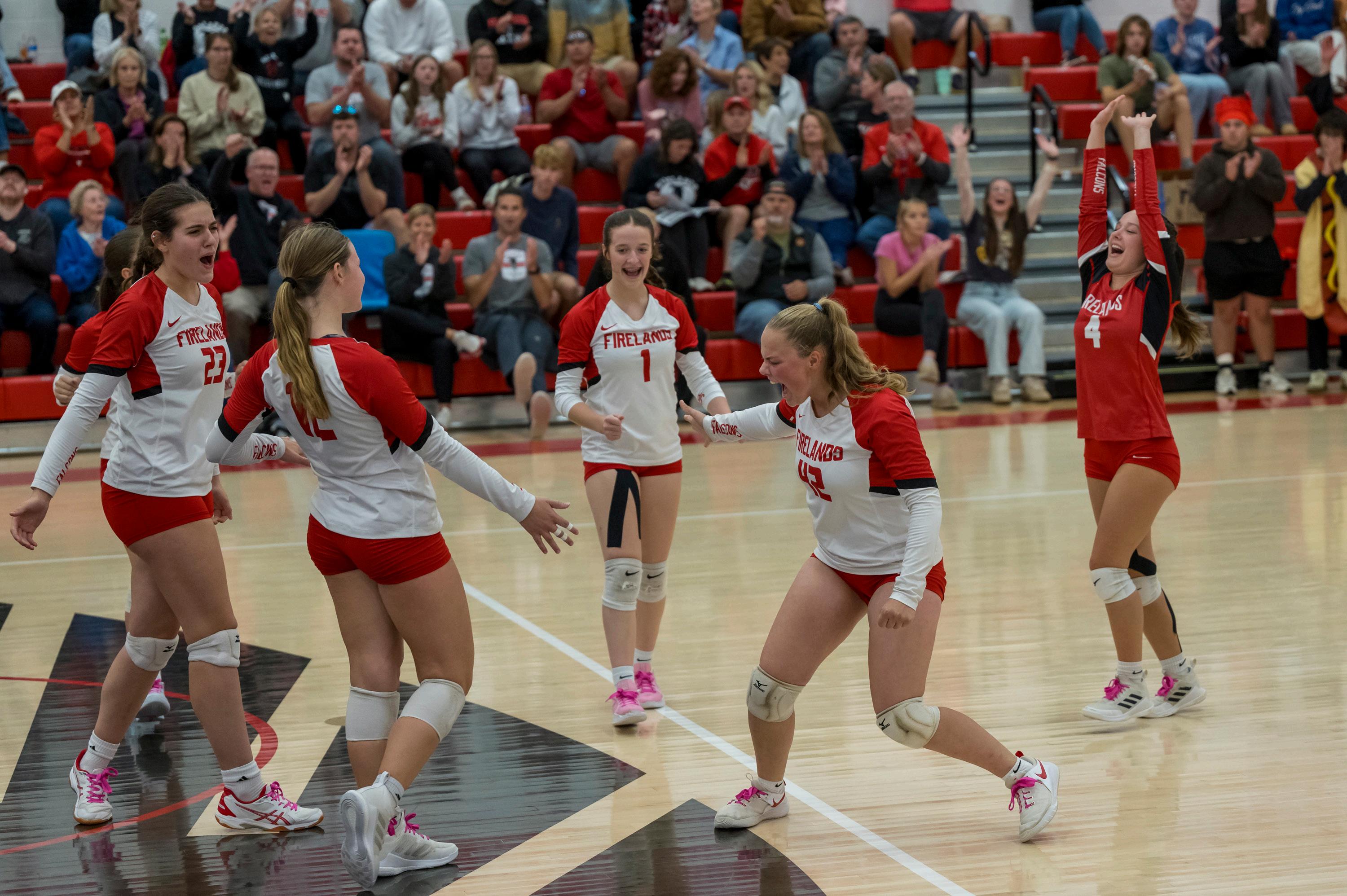 Firelands’ Layla McGuire passes a Crestwood serve.