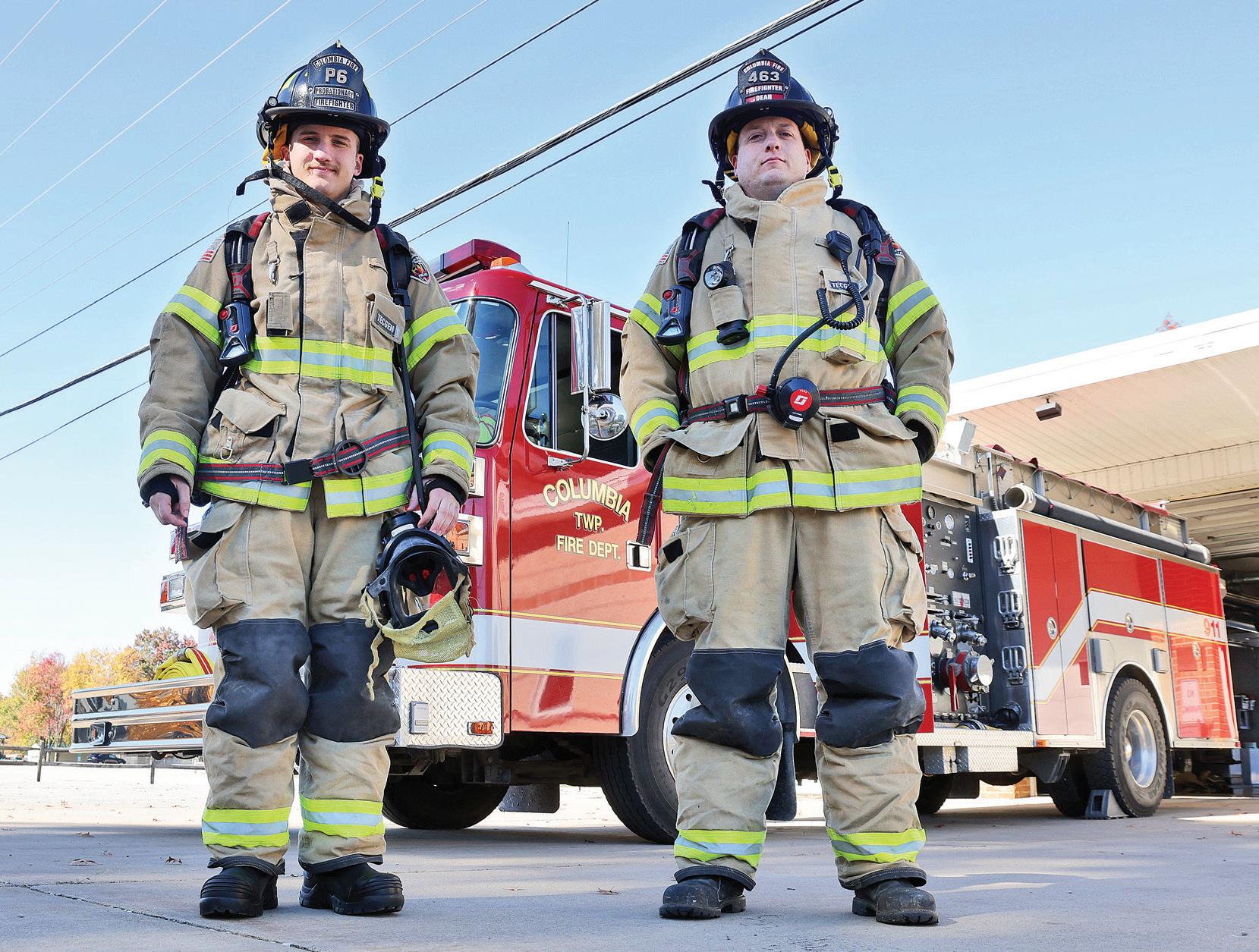 Steve Hernandez, right, shares an emotional moment with Lorain Auxilary Police Chief Jim Malick who is retiring after 48 years. Hernandez was sworn in as his successor. Story on A5