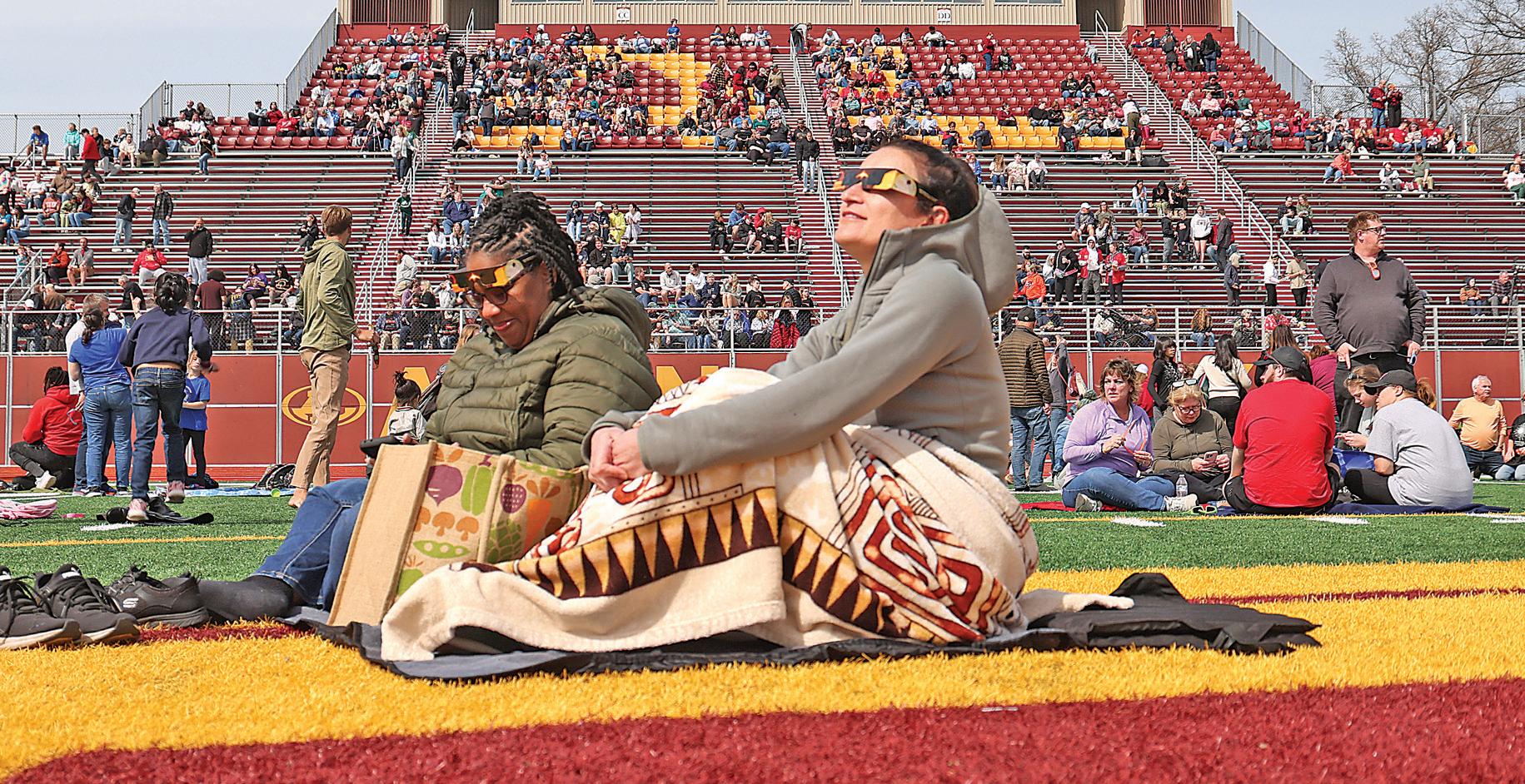 As a false night descended across the horizon in every direction at 3:13 p.m., it sounded as though the roughly 3,000 people in Avon Lake Memorial Stadium had taken off on the descent of
