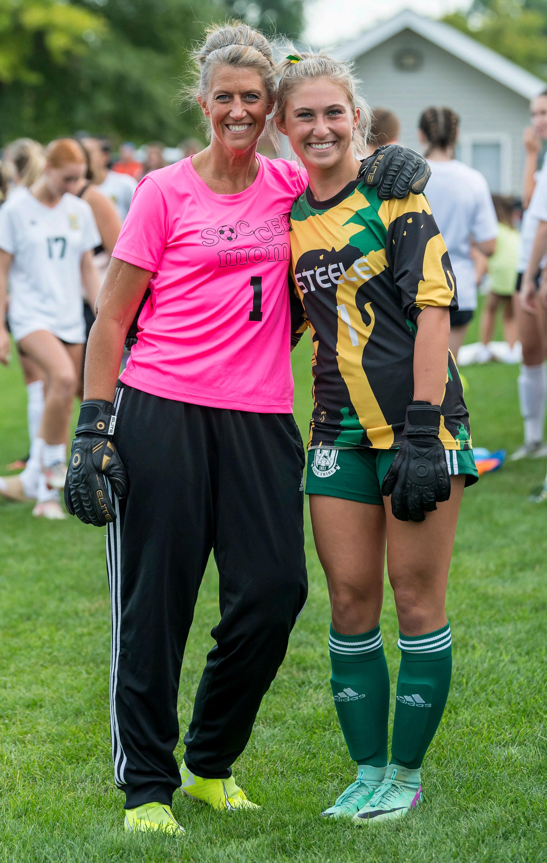 Amherst’s Gabby Vasquez (17) battles for the ball with Gabi Brezina (Class of 2024.)