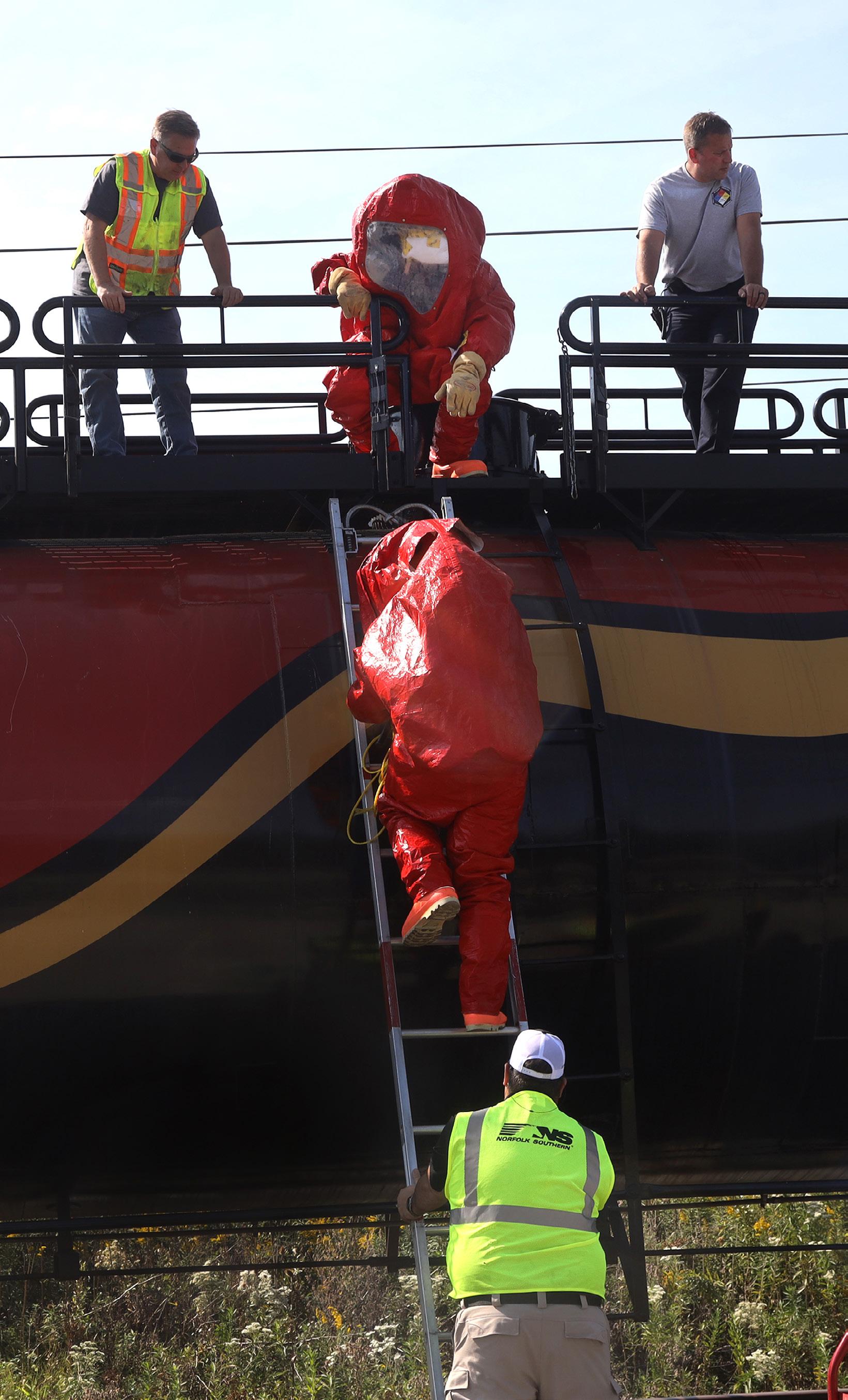Norfolk Southern’s Operation Awareness and Response team hosted the training, both classroom and hands-on work, for firefighters to better understand how to respond to a derailment or other hazards on a Norfolk Southern line.