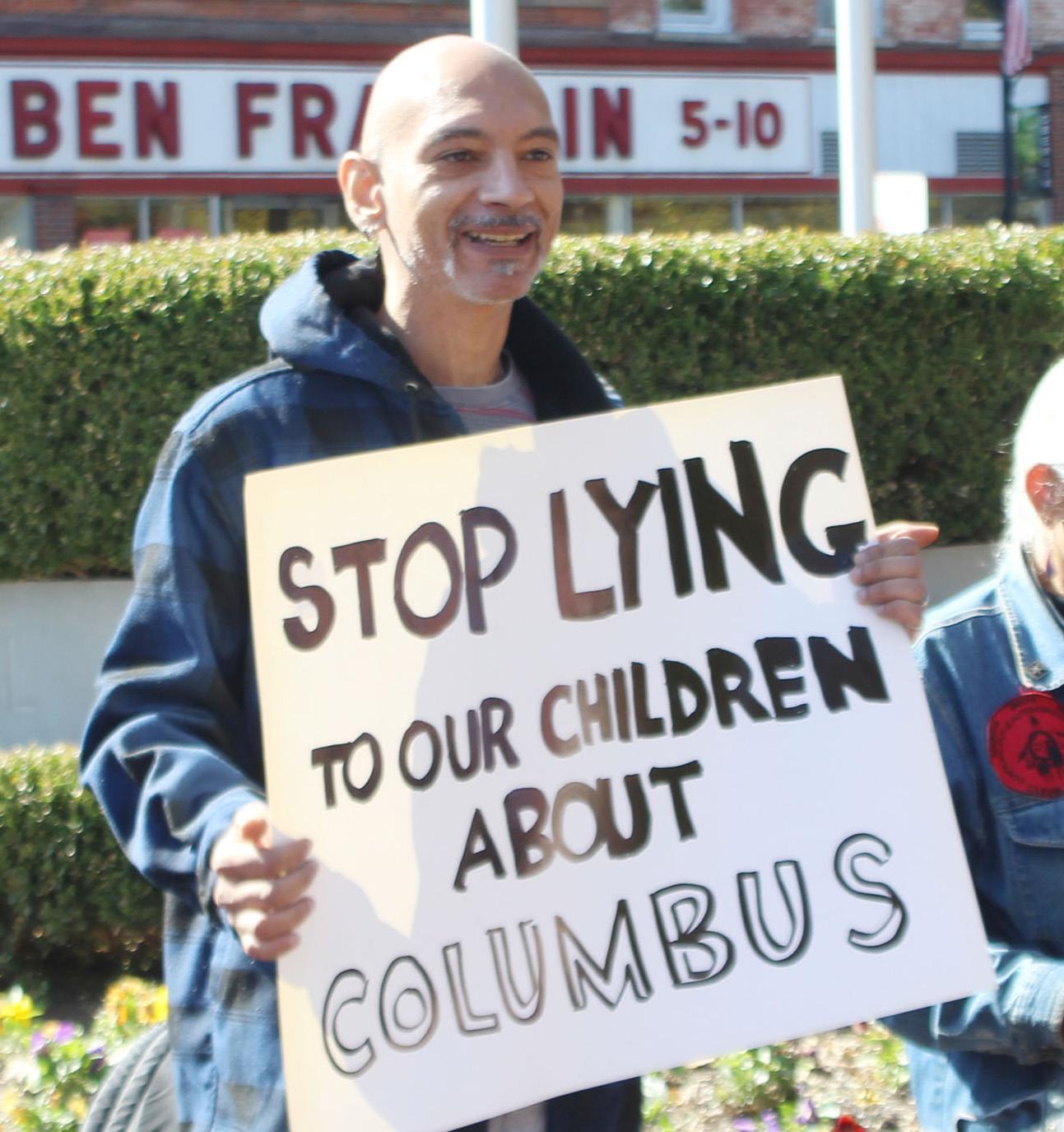 steps. Over it was taped a cardboard sign that said, “Abolish the trust ees.”