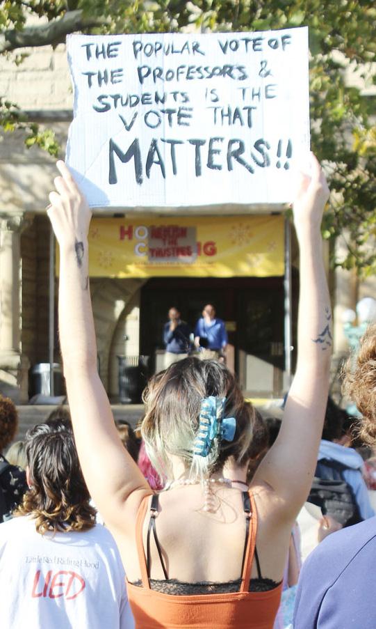 OBERLIN — Hoping to halt a vote that would end a nearly twocentury-old agreement with Oberlin College faculty, hundreds of protest ers gathered Thursday evening in front of Wilder Hall.