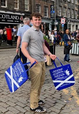 Edinburgh went very well with 40,000 bags going out in 4 days! we have had good feedback from those who have received them. Some handed the bag back and kept the John’s gospel! Please keep on praying for the work and the scriptures as they go out to thousands. I even spotted bags on the ferry to Orkney and got chatting to a lady from New Zealand who was delighted with her bag! We really had a great team of helpers, in the main these were 15–21-year-olds, however we did have some older saints with us for the week of distribution. These are long days, yet they were a great benefit to the work.