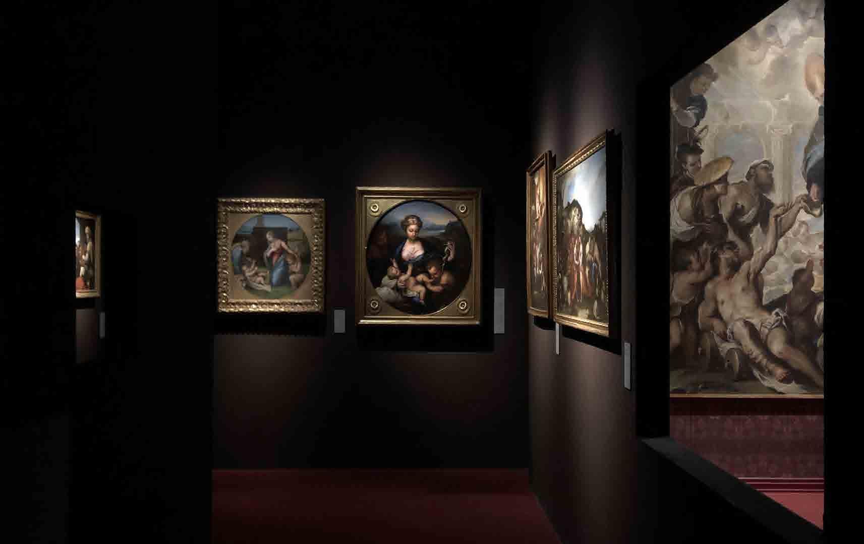 I vicoli delle sale di “Caravaggio Napoli” si tramutano in nuovi spazi dove il susseguirsi di “stanze delle meraviglie”, quadrerie, carta da parati e boiserie di color rosso scuro, sono lo scenario per raccontare il grande pittore napoletano.