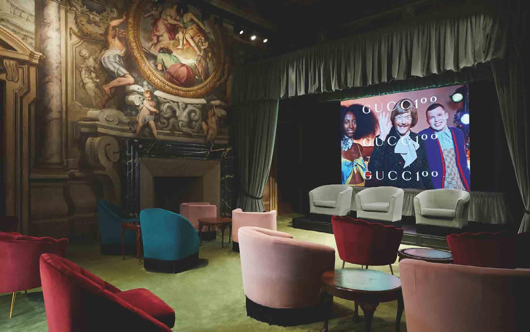 Il circolo, progettato da Without Production e realizzato da Redstudio Allestimenti, inizia da “Gucci 100” e, in un susseguirsi di spazi che esaltano l’estetica della Maison, termina con la presentazione di “The Hacker Project”.