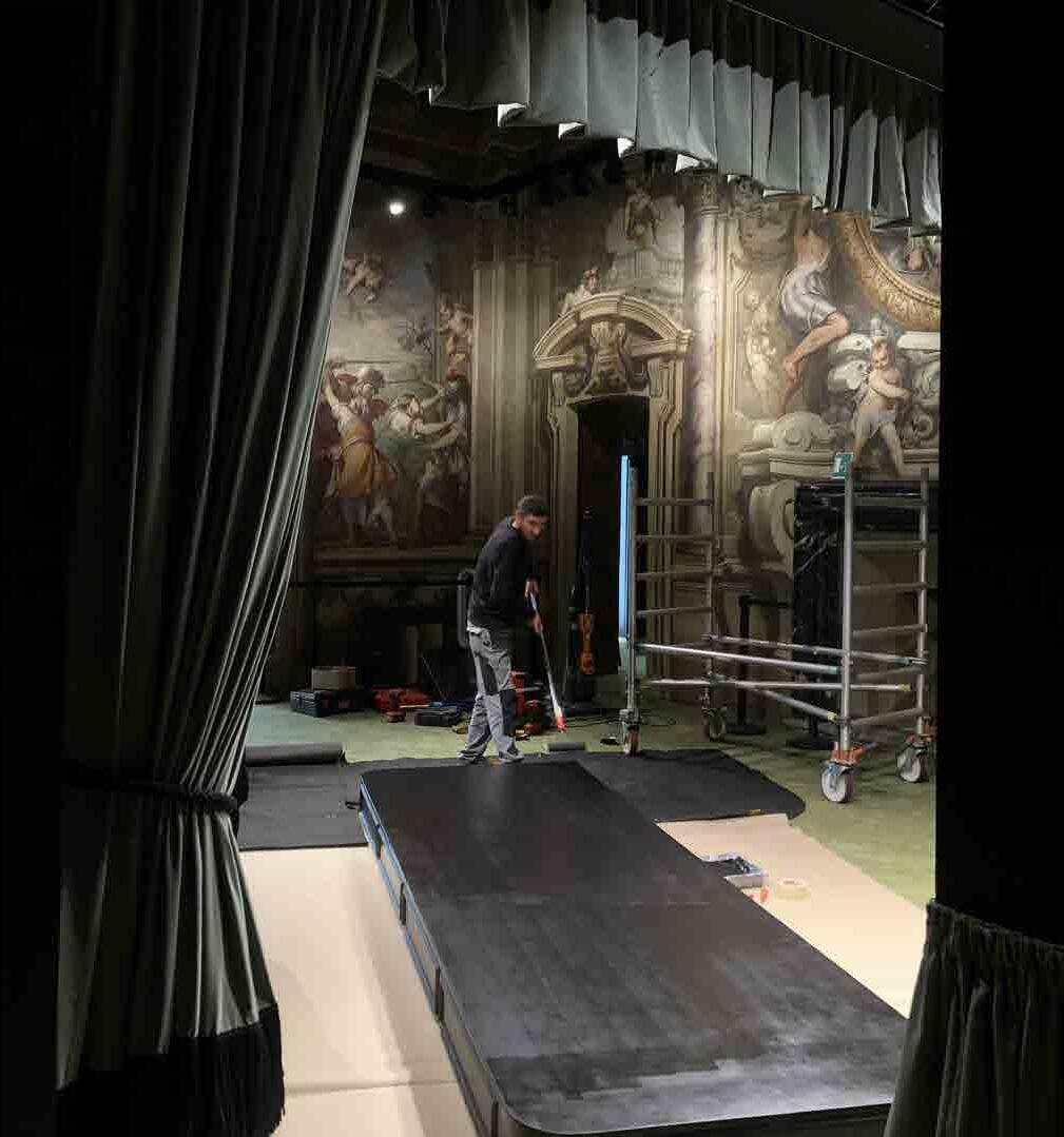 La realizzazione dell’allestimento, così come gli oggetti d’arte protagonisti della mostra, mettono al primo posto le eccellenze Italiane, coinvolgendo diversi fornitori, falegnami e tappezzieri del territorio romano e laziale.