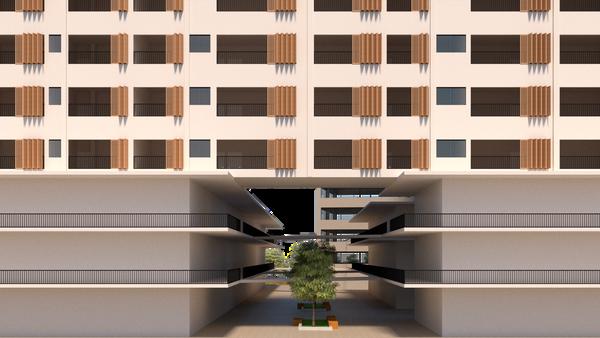 Um complexo multifuncional que oferece moradias tipo studio e dois dormitórios, um centro empresarial com salas de 100m² e salas para locação, além de um complexo comercial com lojas e restaurantes, interligados por uma praça central