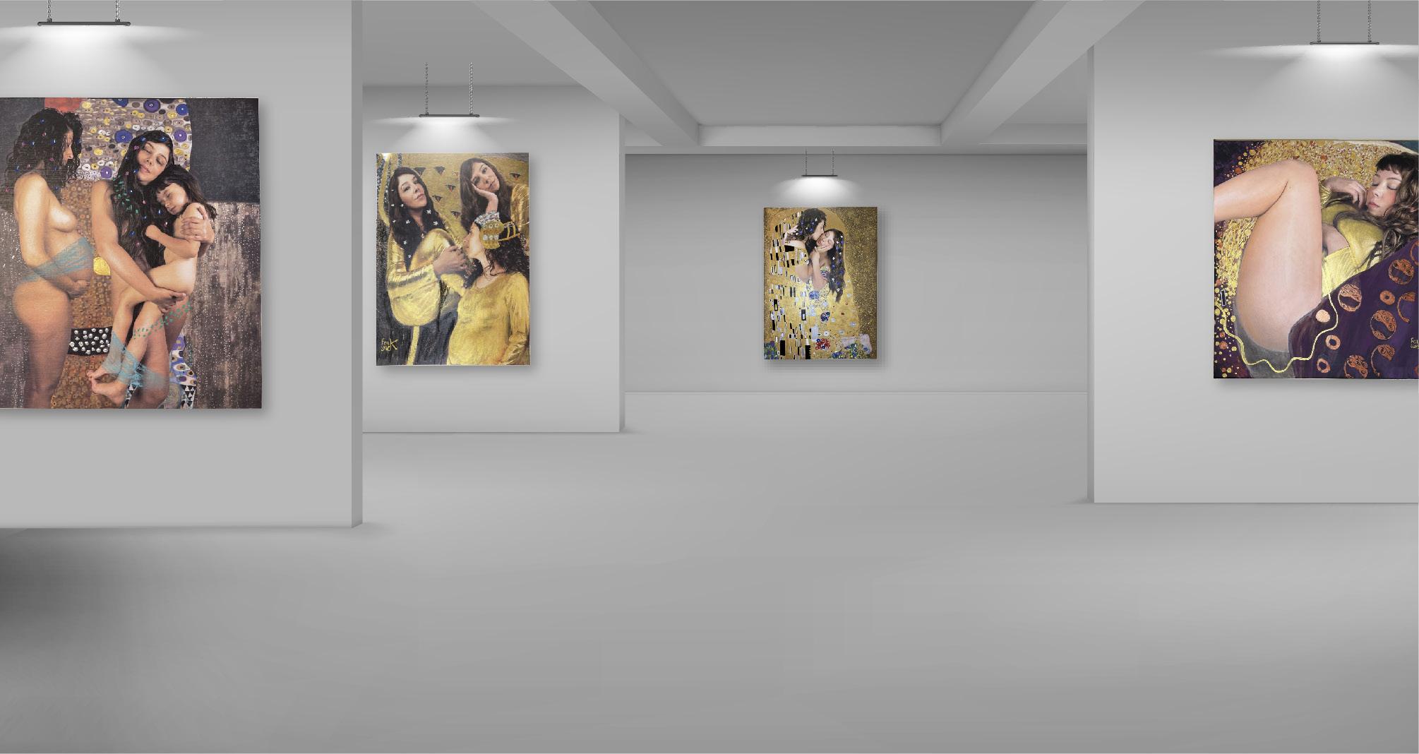 Jo com a dona i artista, m’he apropiat d’obres d’art de Klimt, fent a la volta de fotògrafa, pintora i model. He realitzat una hibridació entre fotografia i pintura, prenent com a referent el treball de Jenny Saville i Lita Cabellut.