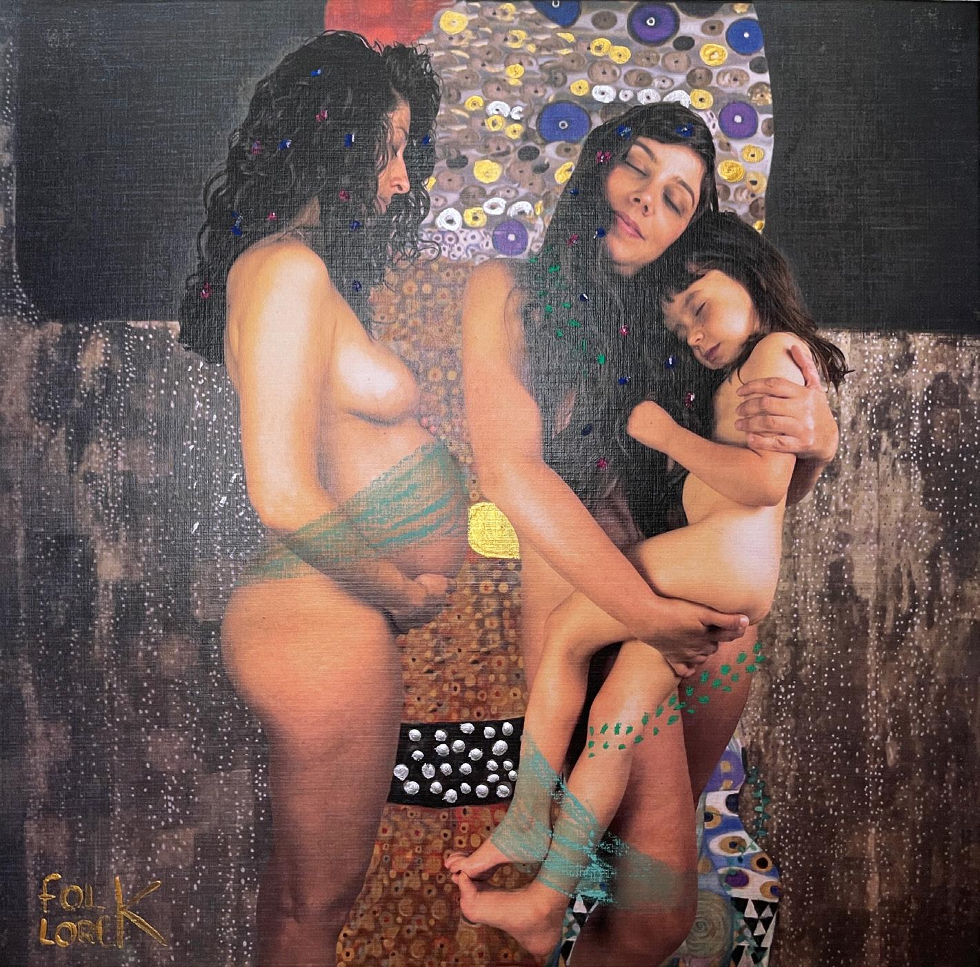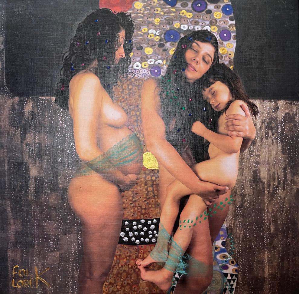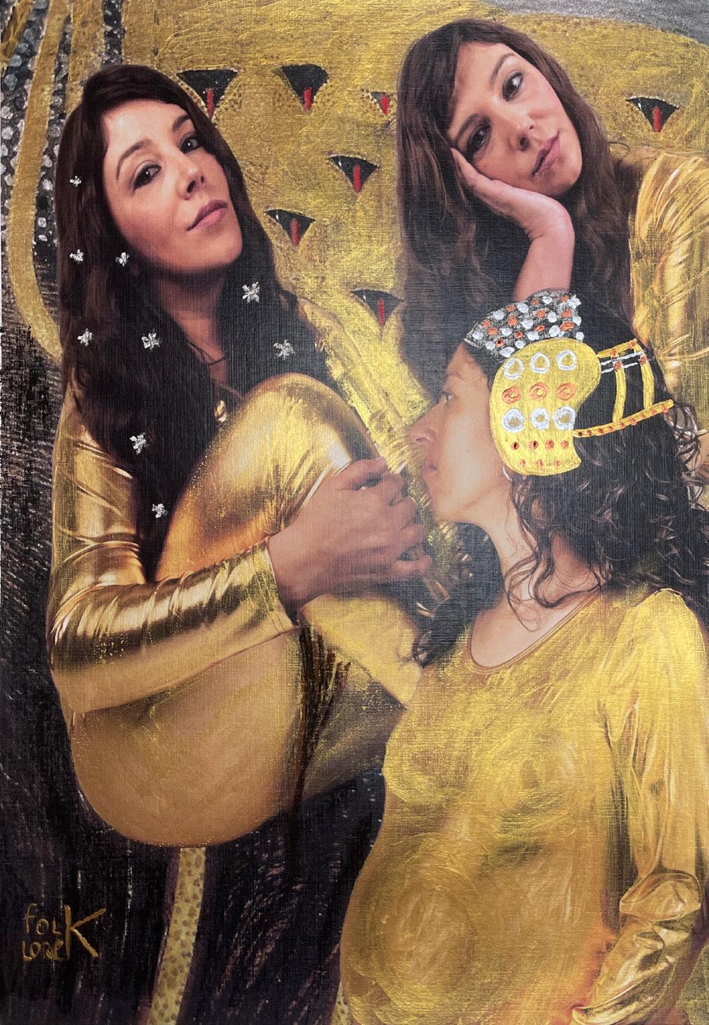 Poderosas (Folklore after Klimt, 2023). Tècnica mixta 40,5 x 29 cm.