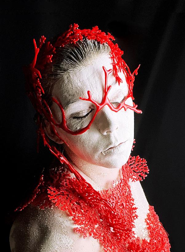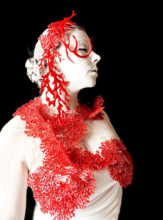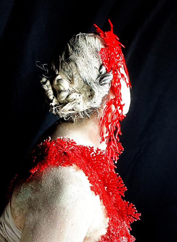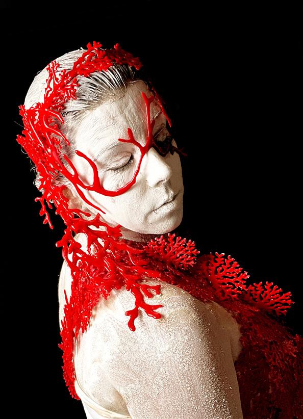 - Dades tècniques: Escultura efímera viva, el cos humà està cobert d’argila i l’estructura de corals és de silicona termofusible. Diàleg entre el llenguatge escultòric tradicional, el mitjà audiovisual i el performatiu. https://vimeo.