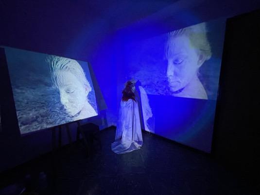 En aquesta videoinstal·lació immersiva, he treballat diferents destreses artístiques alhora, com son la projecció multipantalla sobre l’escultura, la fotografia i la performance pictòrica en temps real.