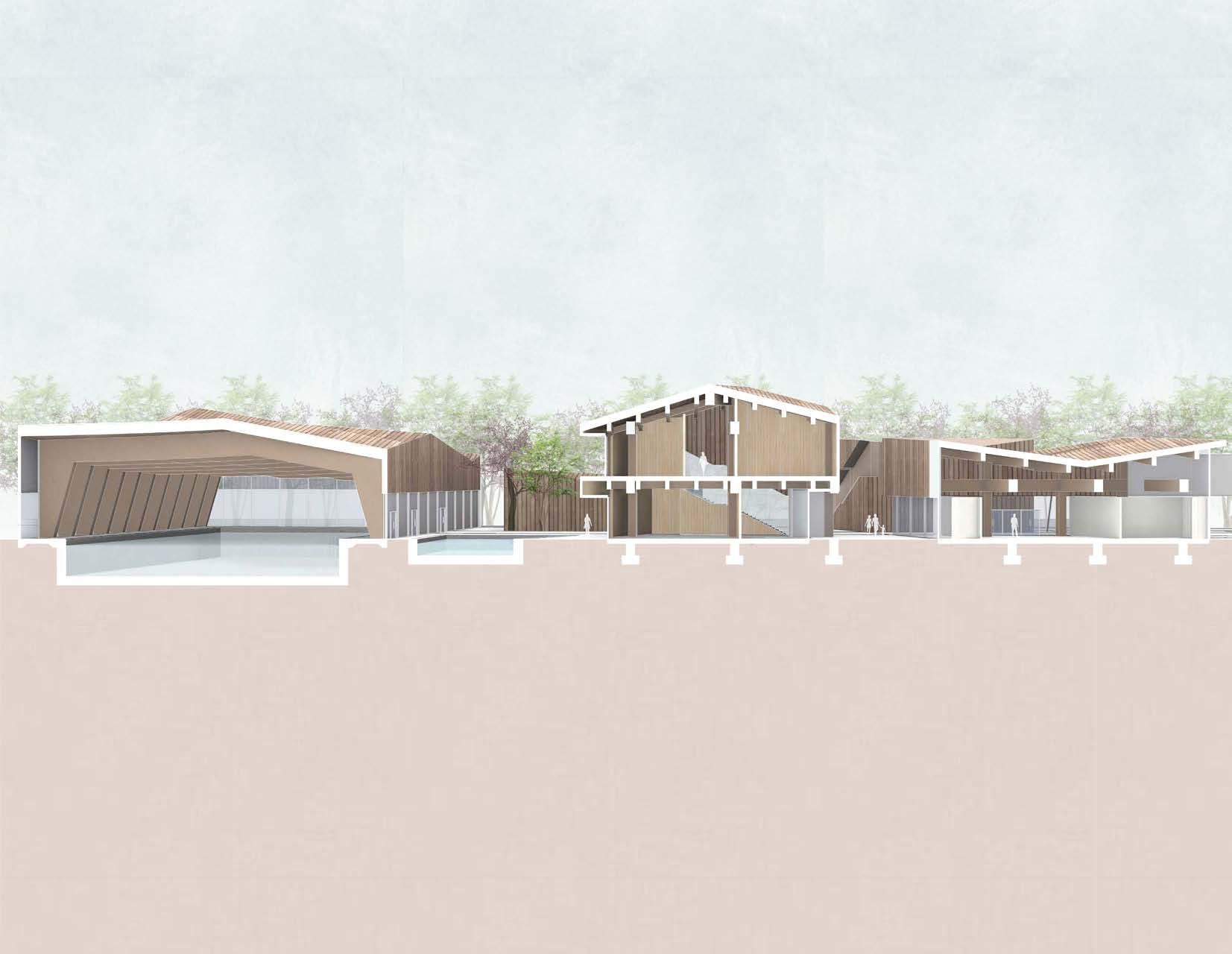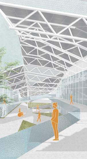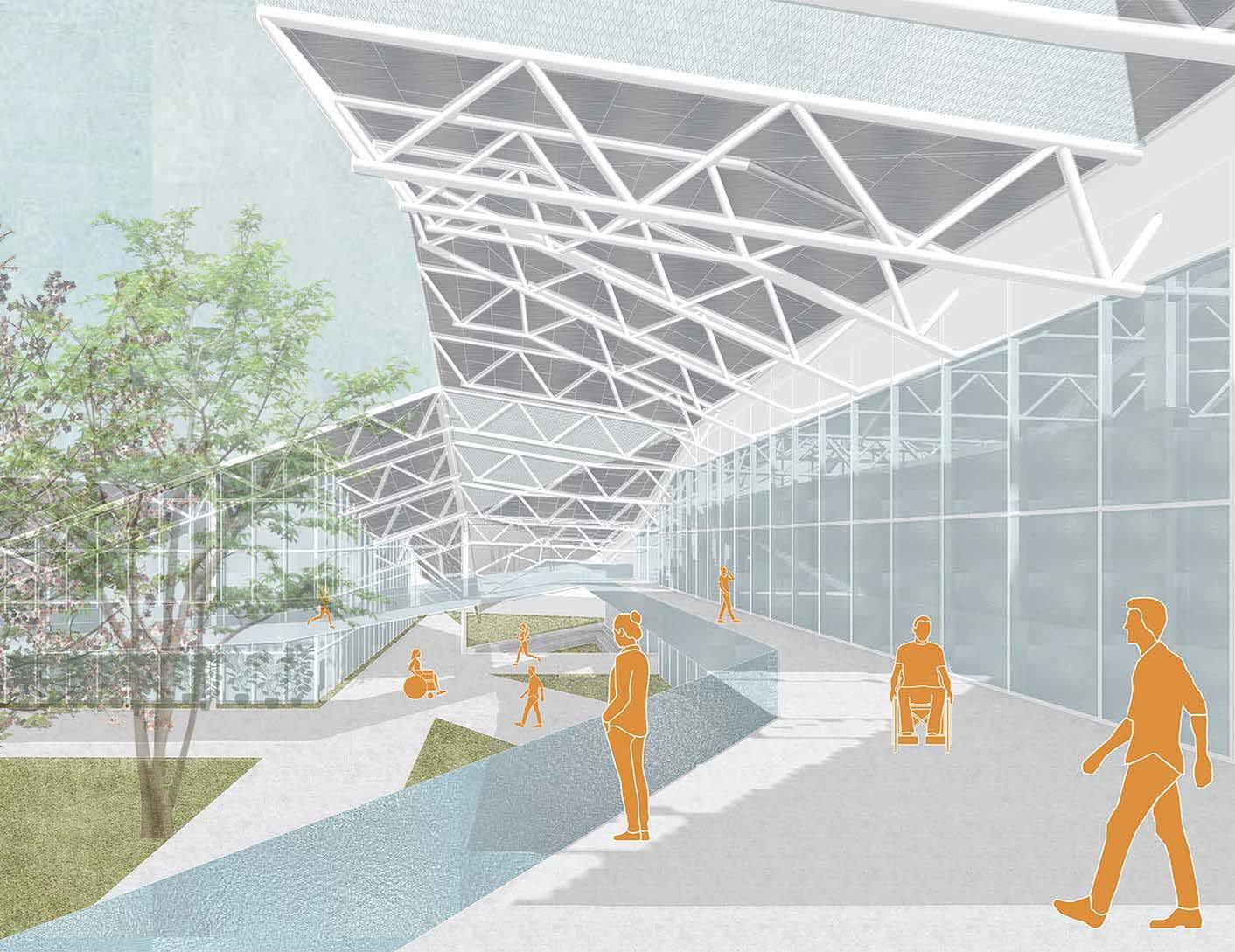 With the concept of a healthy and accessible building, the Paralympic basketball project explores the many ways in which the arrangement of the program and circulation can incentive a better lifestyle for its users. The project uses running tracks loops throughout the site in order to encourage users to move and exercise in an accessible way. The roof system is inspired in the origami art and it defines the room shapes and circulation on the site. The project introduces ramps that give access to the second floor. All ramps are ADA compliant making this facility inclusive and accessible for all. The courts are stacked in order to maximize the sports area on the project and both have direct access to the lockerooms and restrooms on each level. Since the neighborhood of USC lacks in health care facilities for locals, the Paralympic Basketball Facility introduces a health center that will operate during the Paralympics but also will extend its operation after the event is over. The health center will address both mental and physical health issues for locals with low-income.