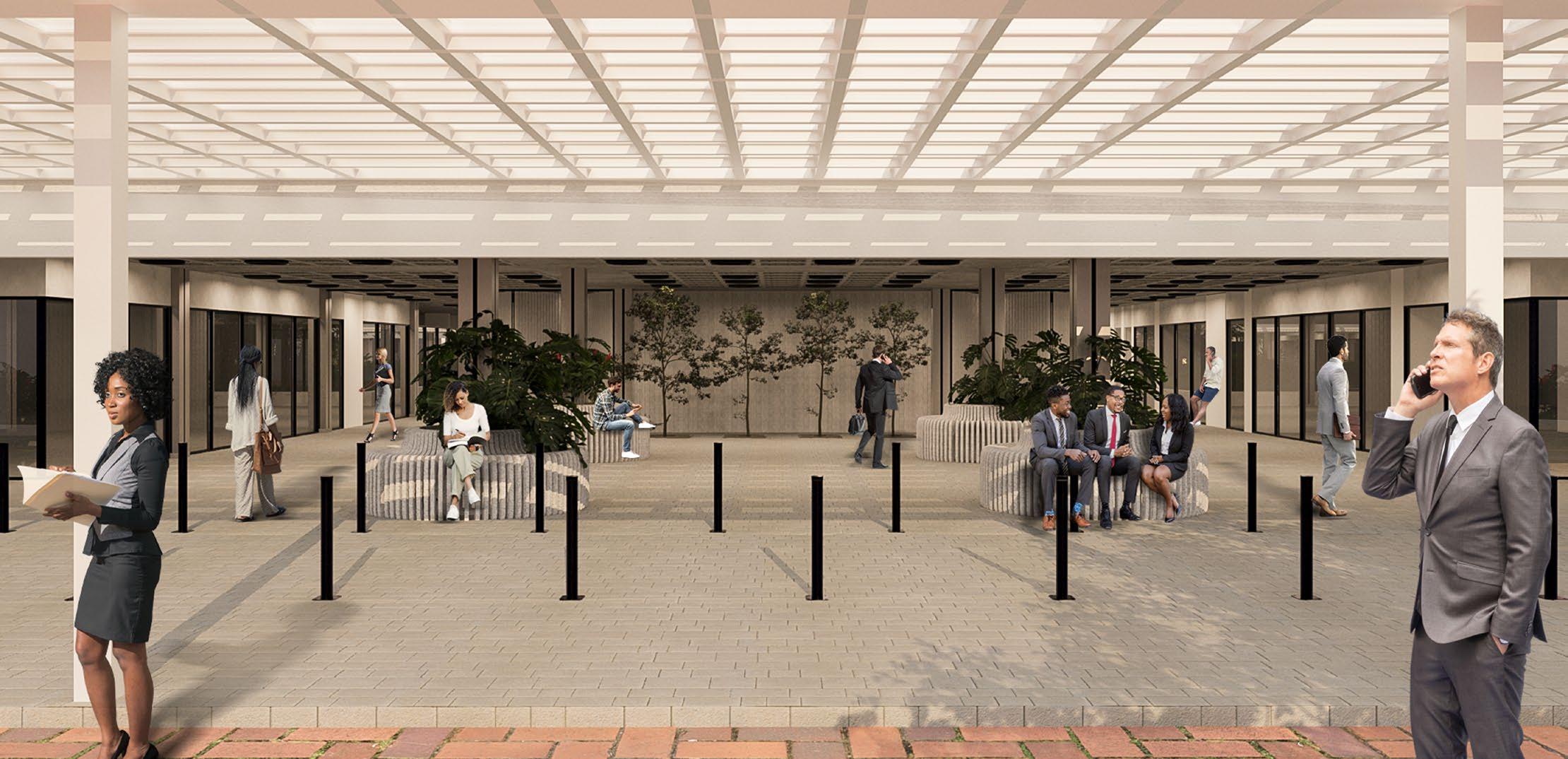 El proyecto recupera la integración social y apropiación del espacio público potenciando un punto de encuentro sin igual para un edificio institucional. El edificio se convierte en una “calle peatonal” llena de vida donde todos son bienvenidos, cumpliendo con las normas de seguridad y accesibilidad universal. Es un proyecto que aporta cualidades no solo al espacio si no también a la calidad de vida y bienestar de quienes se desarrollen dentro de el. Aporta,