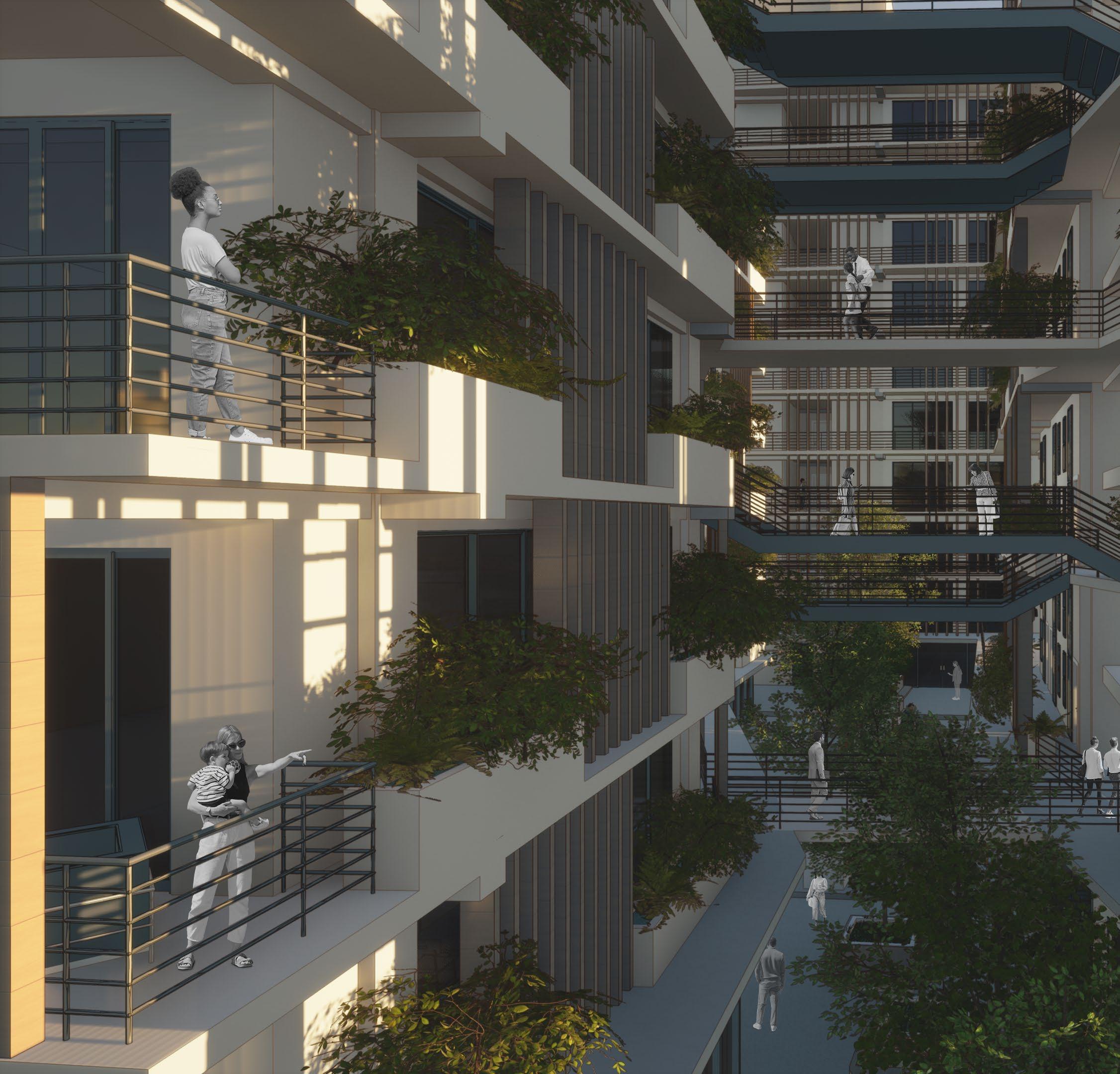 Todo esto logra que los edificios se integren al tejido urbano de la zona, no solo ofreciendo novedad a quienes vayan a residir aquí, sino también, invitando al peatón a ser parte de su recorrido.