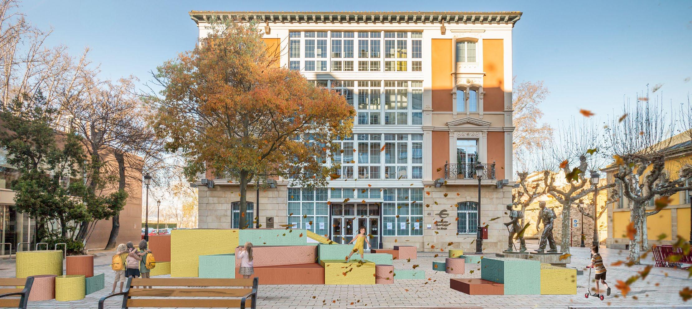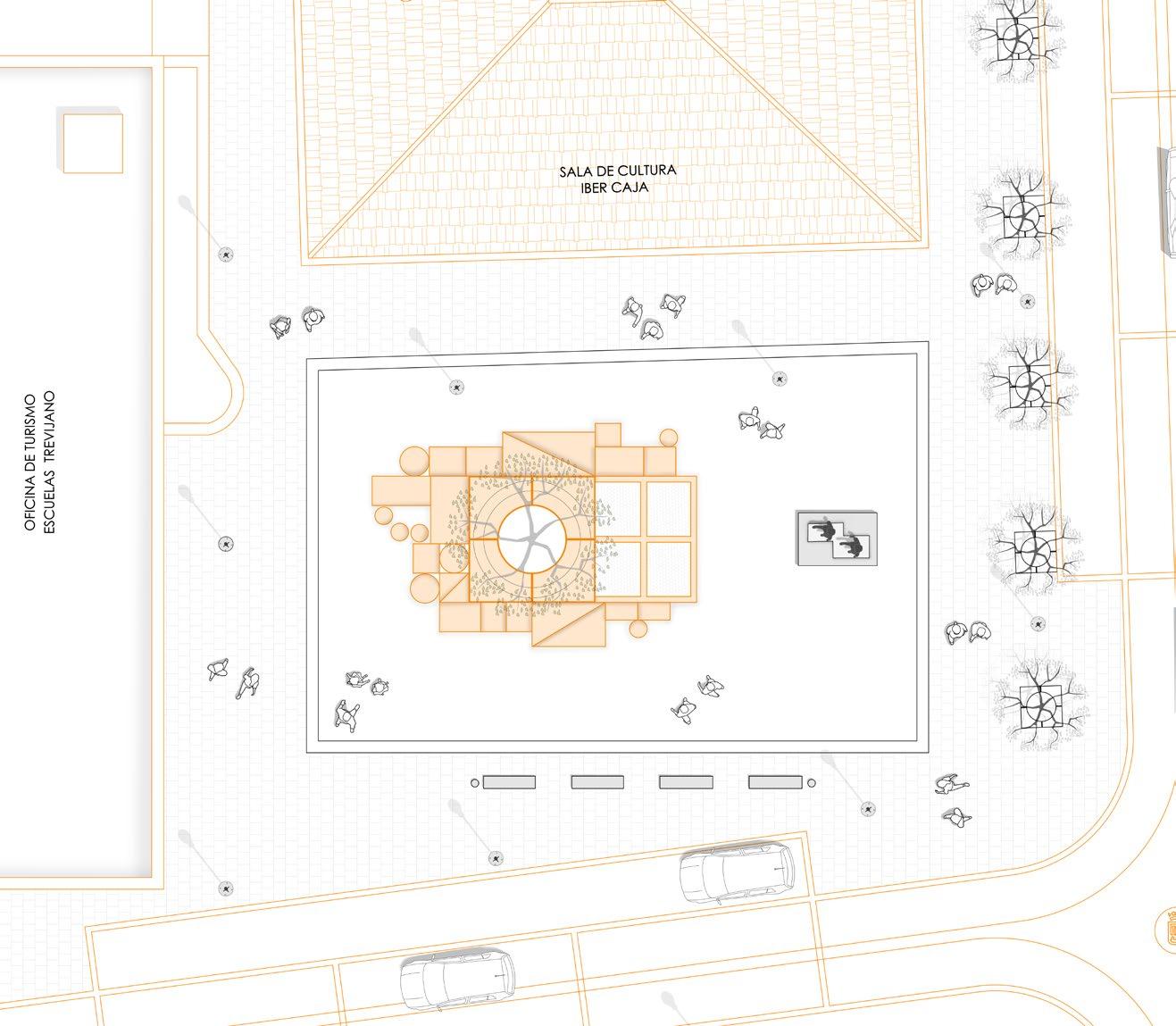 Esta icónica plaza frente a la Escuela Trevijano, en La Rioja, ha sido el centro de los festivales CONCENTRICO. Representa la convergencia y reunión del diseño. Es el punto de partida de nuestro diseño, representando a su gente y lo que este lugar significa. Por ello, al analizar su tejido urbano, notamos el vacío que existe de espacios reacreativos y de esparcimiento. Esto nos indicó de manera inmediata, que la intervención que requería esta plaza era proveer una manera equitativa de juego y creatividad tanto para niños como para adultos.