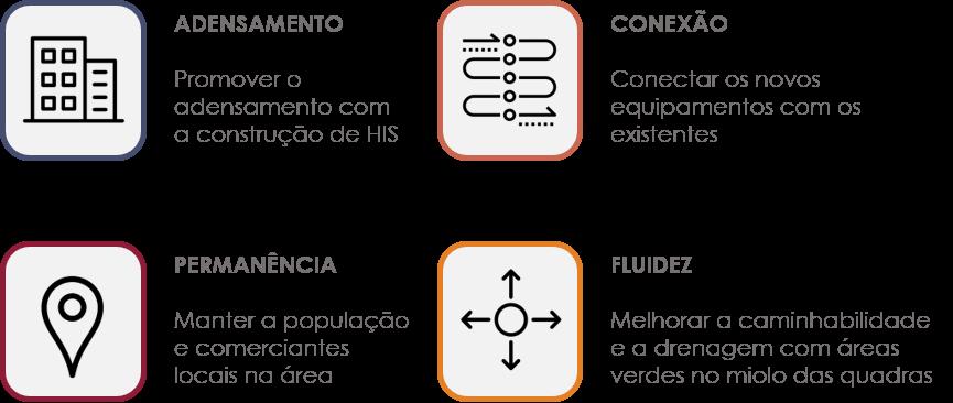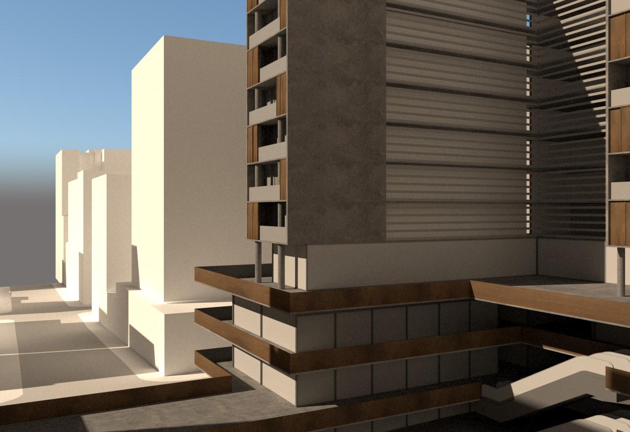 Por estar localizado em área central da cidade de São Paulo, este projeto destinou o uso comercial nas cotas térreas para melhorar a fruição pública, de modo que a passagem da calçada para o interior do projeto se tornasse um caminho fluído. Os edificios foram projetados de maneira que as empenas cegas presentes nas contruções vizinhas fossem anuladas. O uso das torres é misto, enquanto uma abriga lajes para escritórios e uma área de co-working a outra concentra unidades habitacionais de um e dois quartos mais as áreas comuns aos moradores.